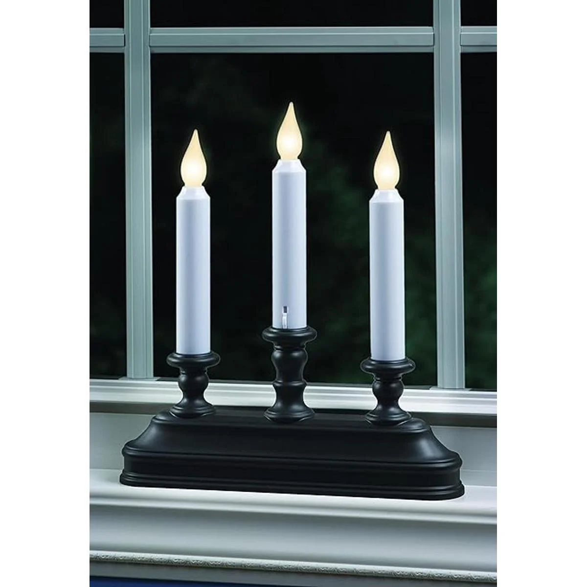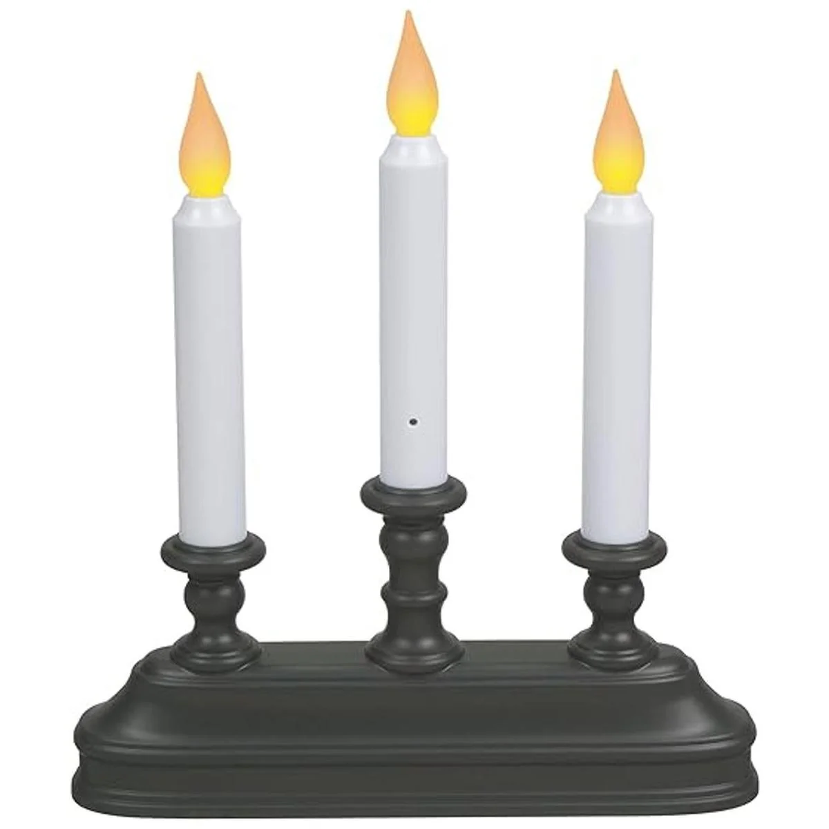 Xodus Innovations FPC1330A Velas de ventana de 10 pulgadas con inclinación para cambiar el color de la llama y temporizador de sensor de luz del atardecer al amanecer con base de candelabro de 3 velas, negrobronce antiguo