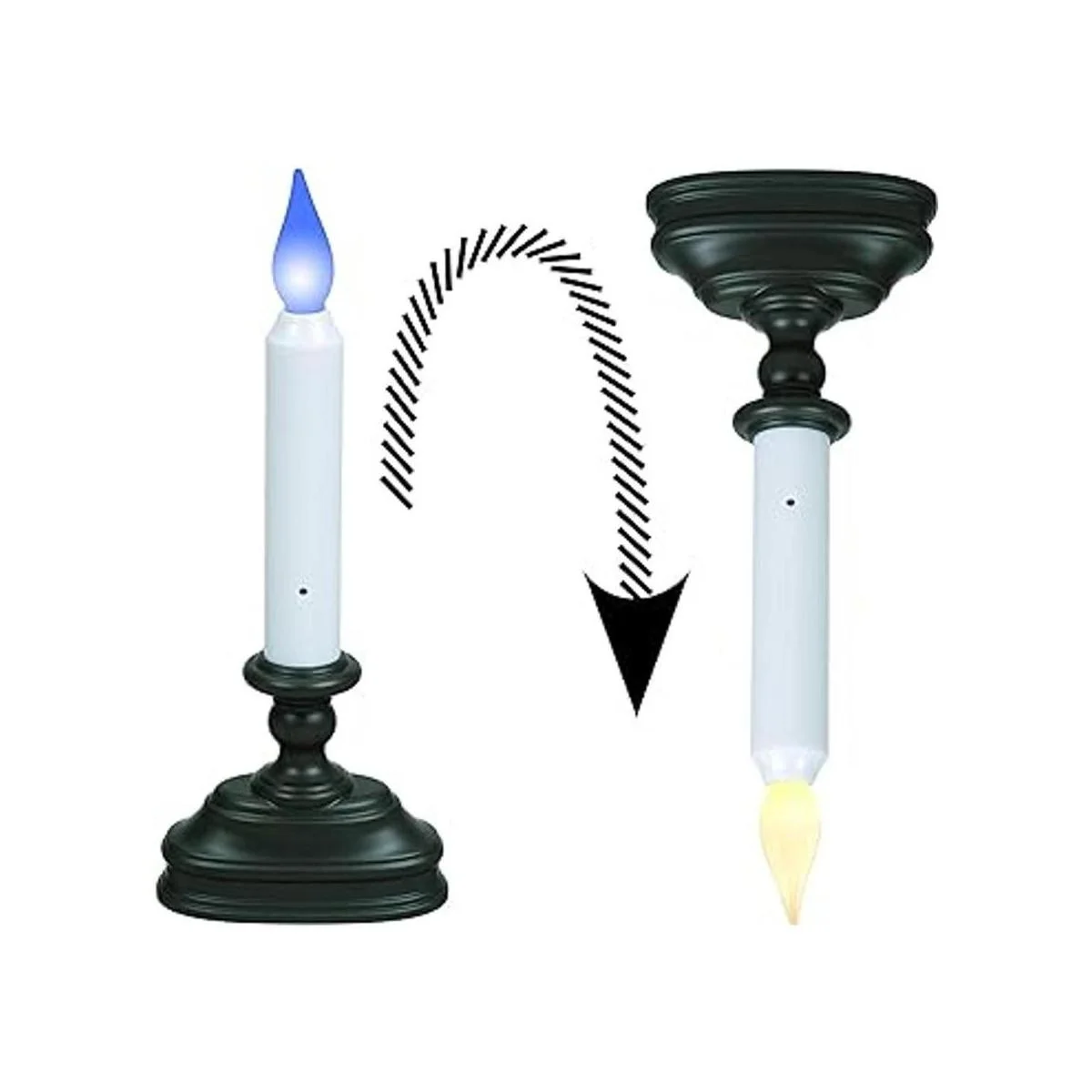 Muestra el soporte con una llama blanca azul o contemporánea, simplemente inclina la vela para cambiar el color de la llama