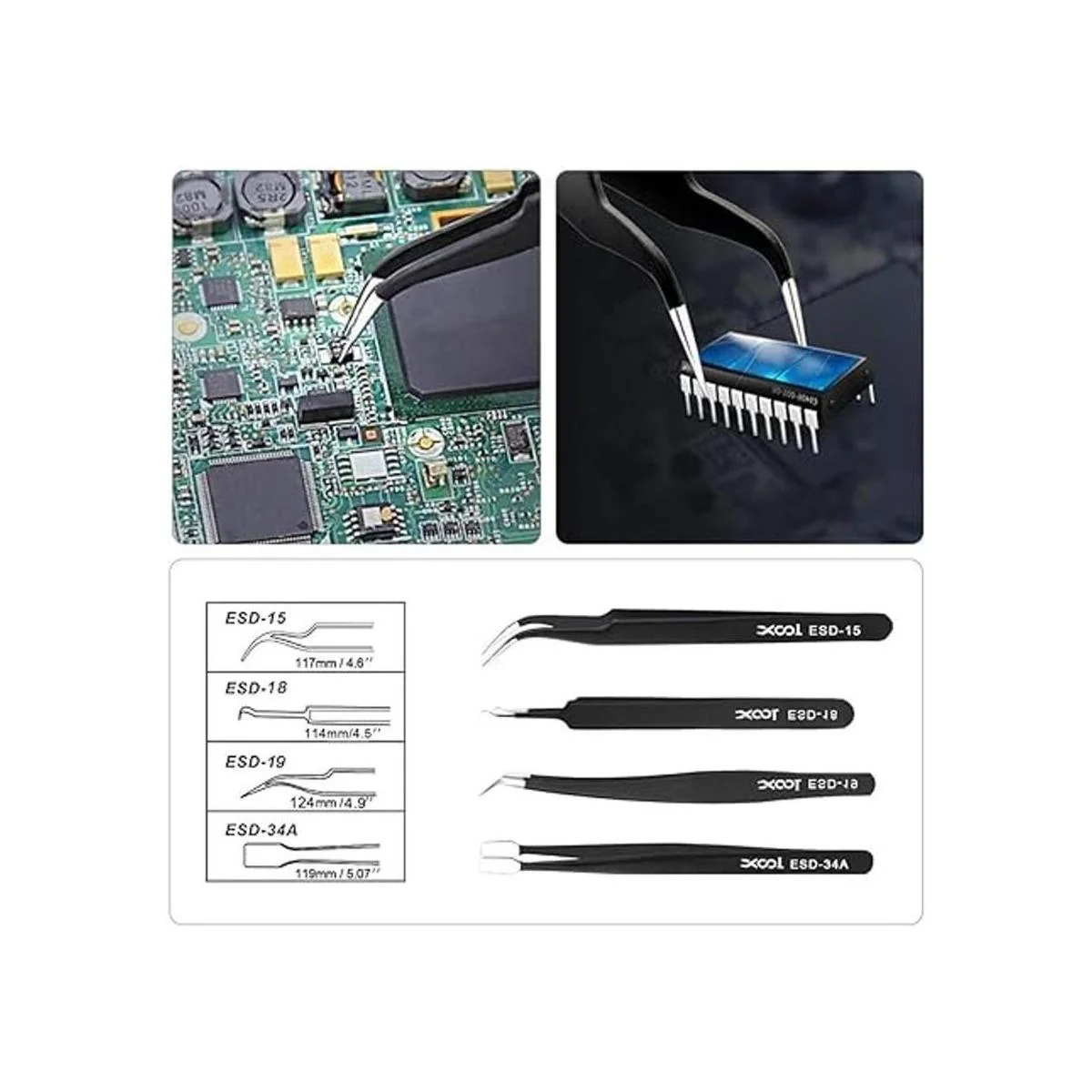 XOOL ESD Juego de pinzas de precisión antiestáticas, no magnéticas y de uso múltiple, pinzas de acero inoxidable con bolsa de almacenamiento para laboratorio, electrónica, joyería y trabajos delicados