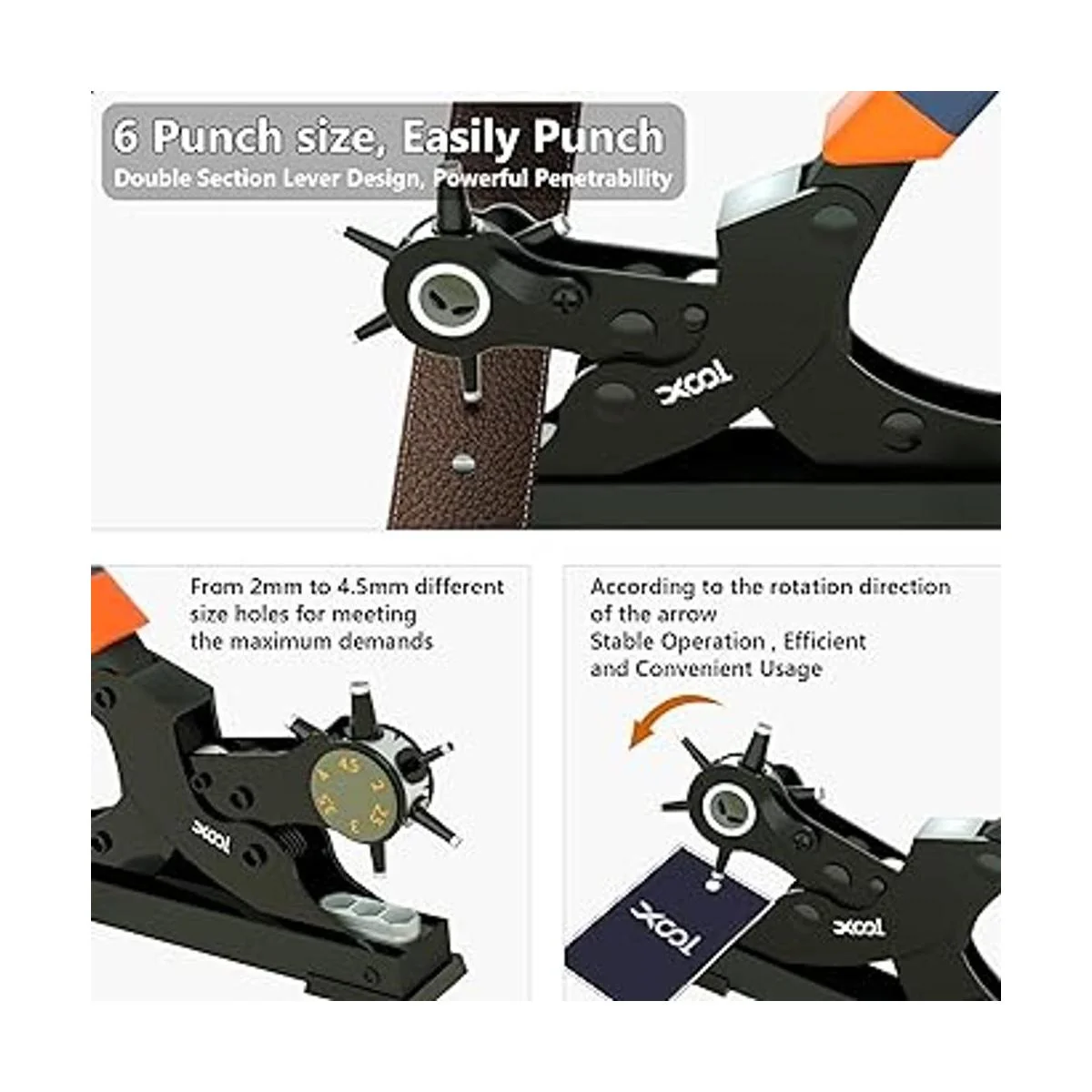 XOOL Juego de alicates giratorios de cuero para cinturones, correas de reloj, correas, collares de perro, sillas de montar, zapatos, tela, proyectos de bricolaje para el hogar o manualidades, perforador giratorio resistente, tamaños de agujeros múltiples
