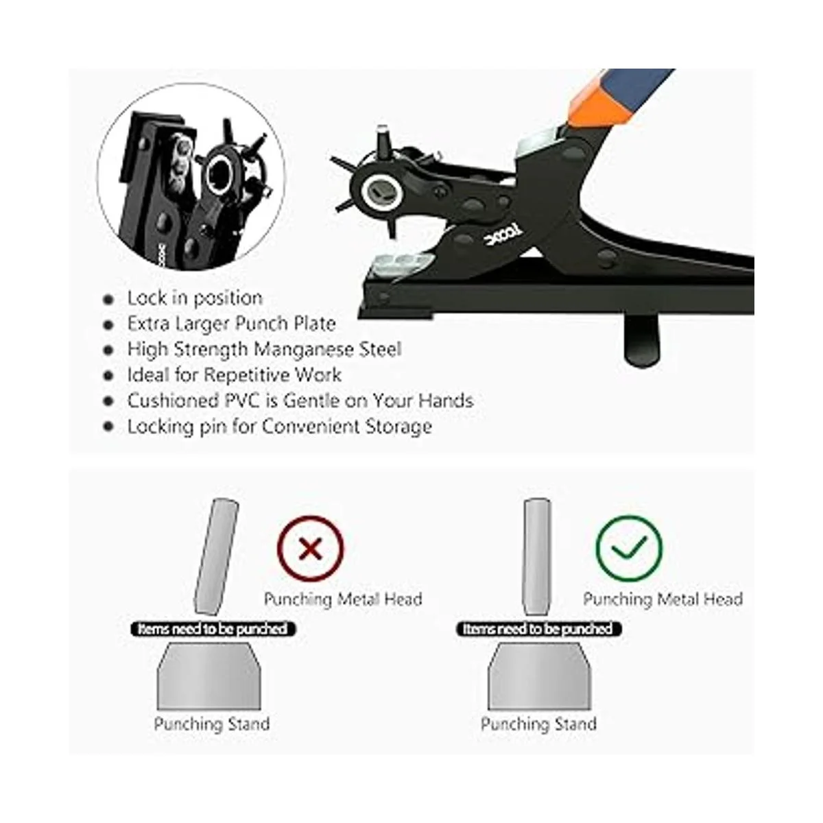 Multifunción: ideal para su uso en una variedad de superficies. Es una herramienta impresionante. El alicate perforador se utiliza comúnmente para perforar agujeros redondos en cuero, cinturones, plástico, goma, lona, tela, cartón, sillines y materiales similares; especialmente útil como perforadora de cuero.