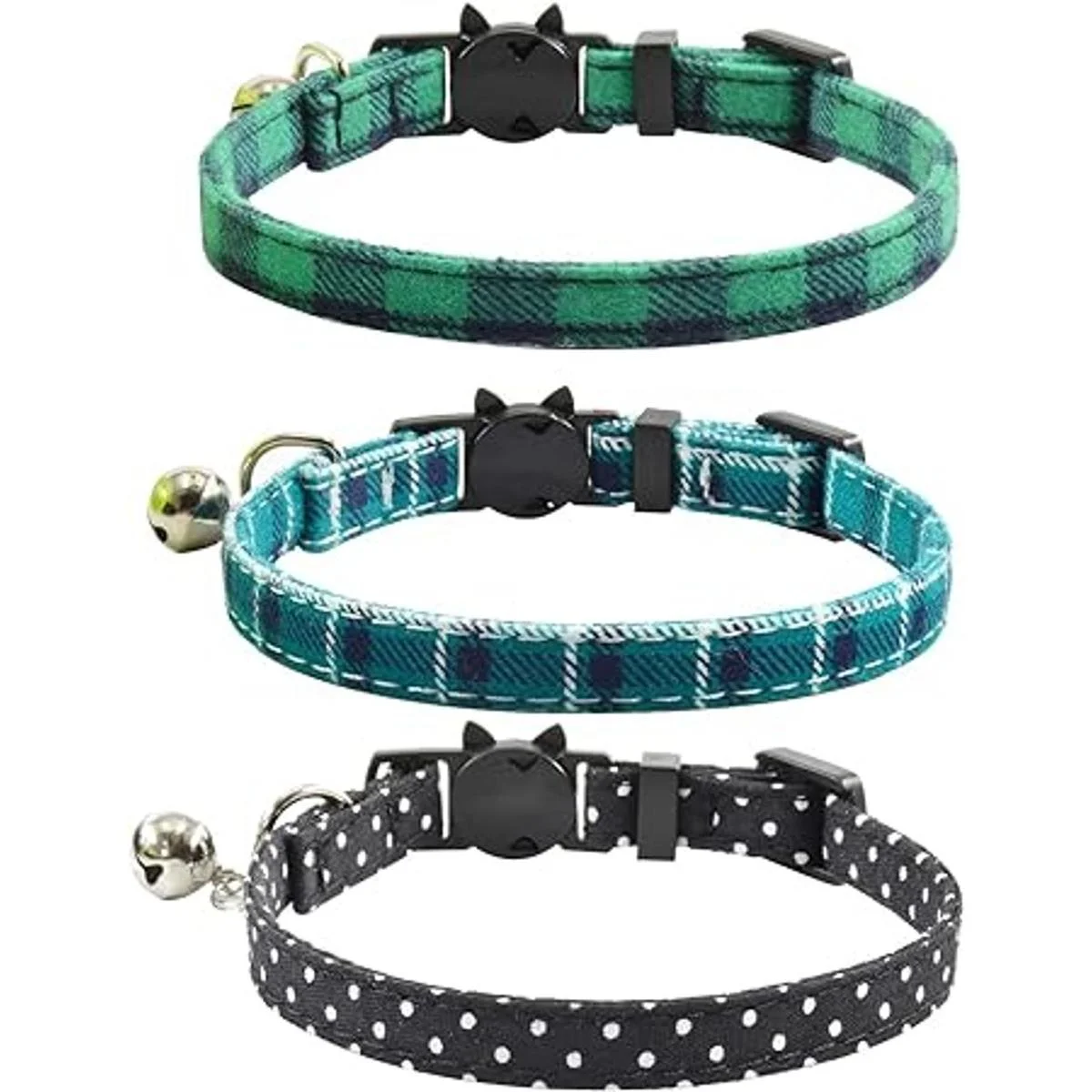XPangle Breakaway Collares de gato con campana, juego de 3, duraderos y seguros collares de gatito lindos collar de seguridad ajustable para gato cachorro de 7.5 a 11 pulgadas