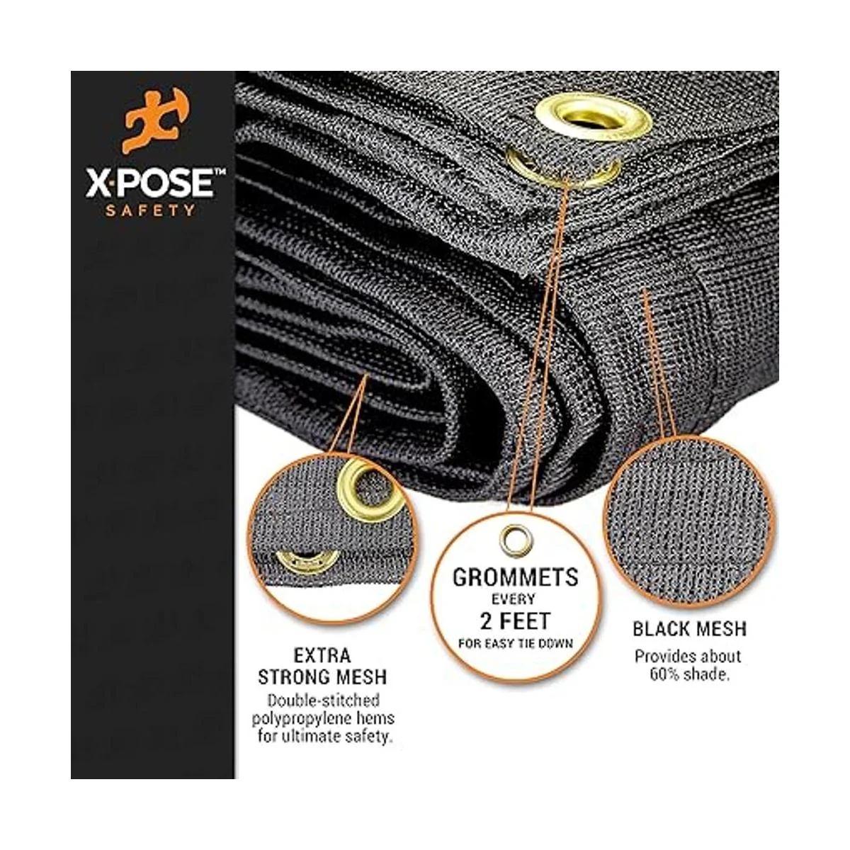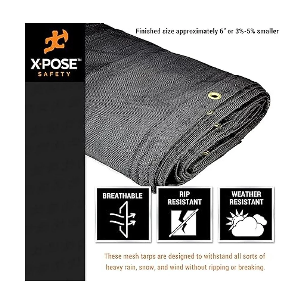 Xpose Lona de malla de seguridad resistente Multiusos negro cubierta protectora con flujo de aire Uso para amarres, sombras, vallas, toldos, camiones volquete impermeable, resistente a la intemperie y al desgarro