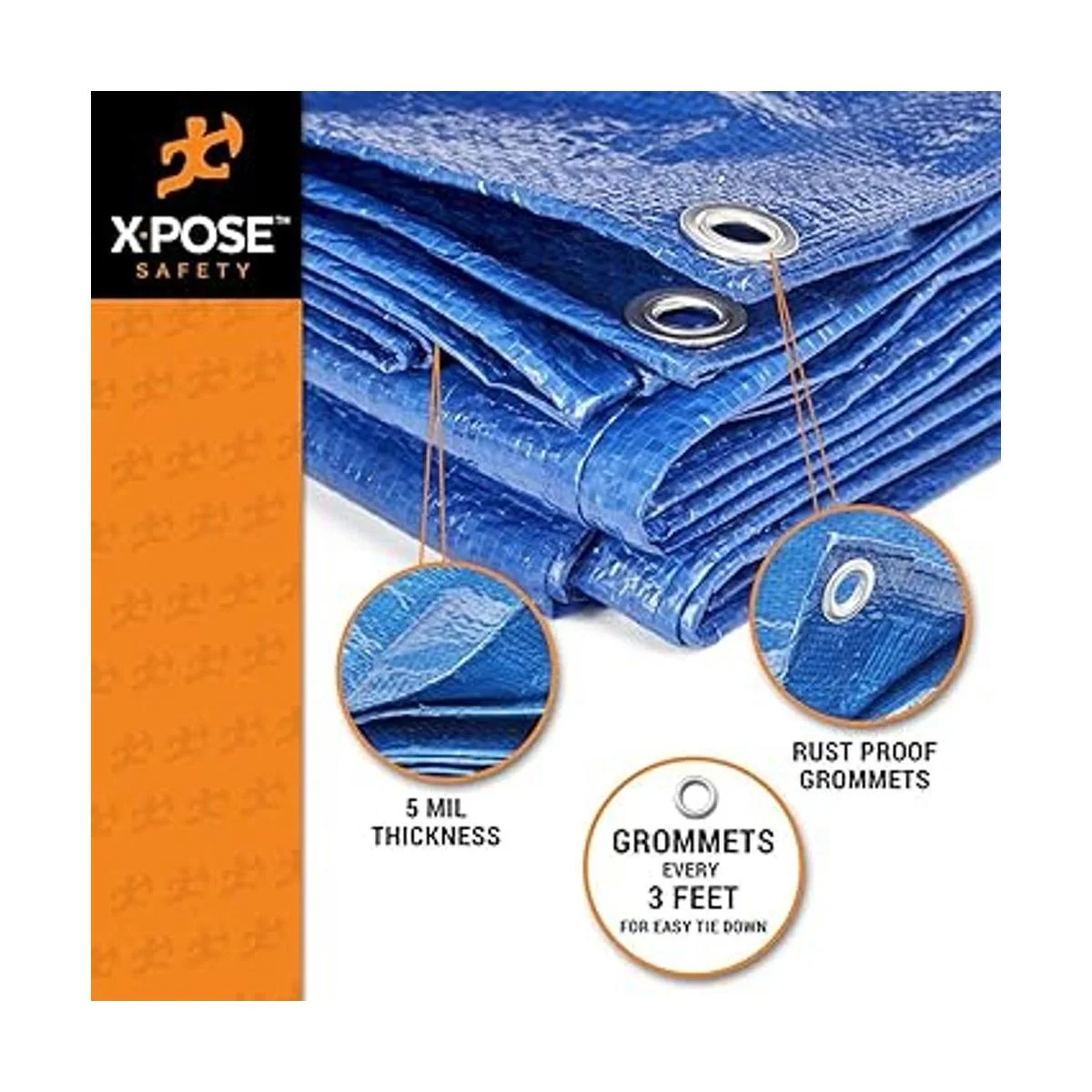 Xpose Safety Lona de polietileno ligera azul Funda protectora multiusos, paño de goteo duradero, impermeable, resistente a la intemperie 0.197 pulgadas de grosor por Xpose Safety, Azul