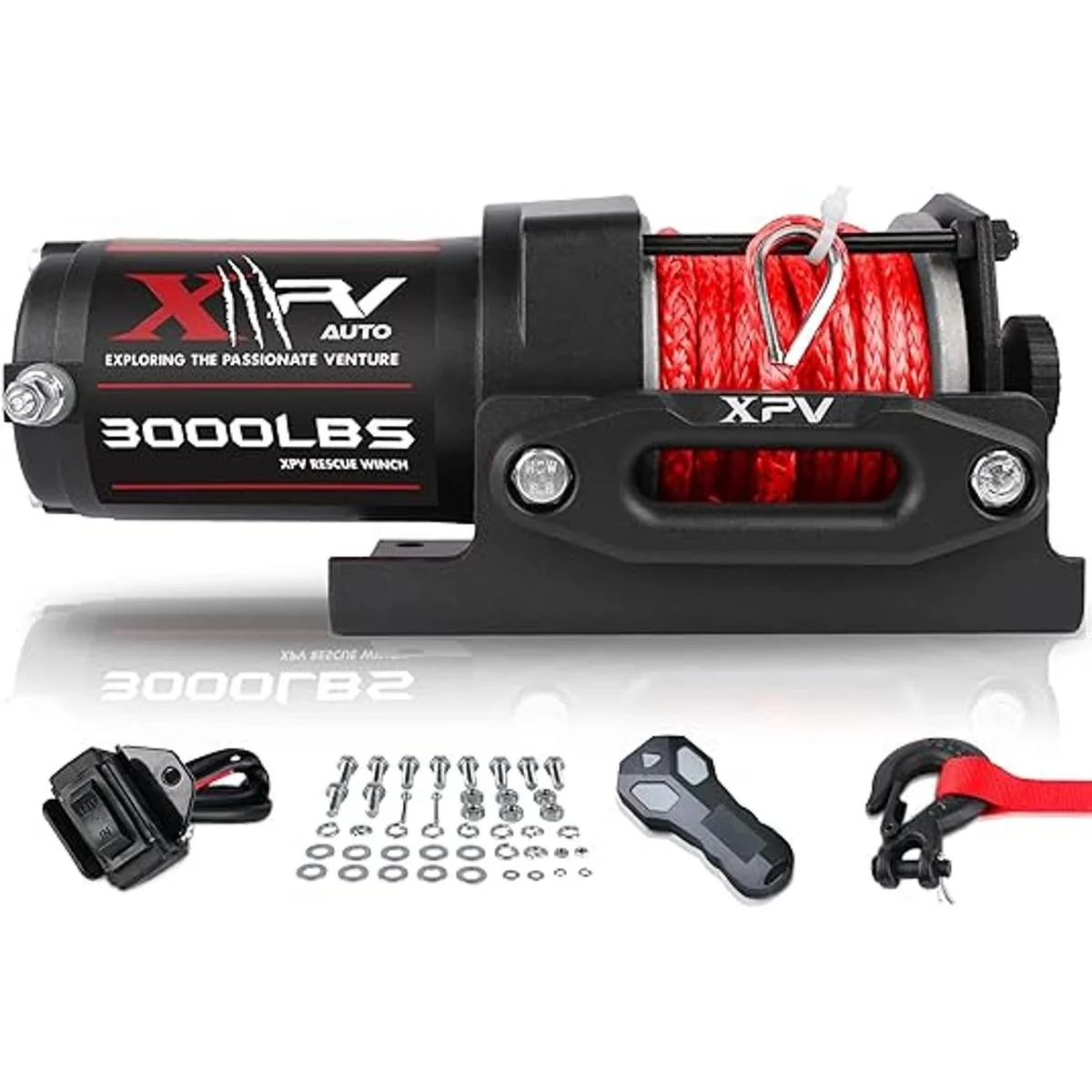 XPV AUTO Cabrestante eléctrico de 3000 libras y 12 V CC, cabrestante impermeable todoterreno para UTV ATV Boat con control remoto inalámbrico y cable de recuperación de cabrestante sintético