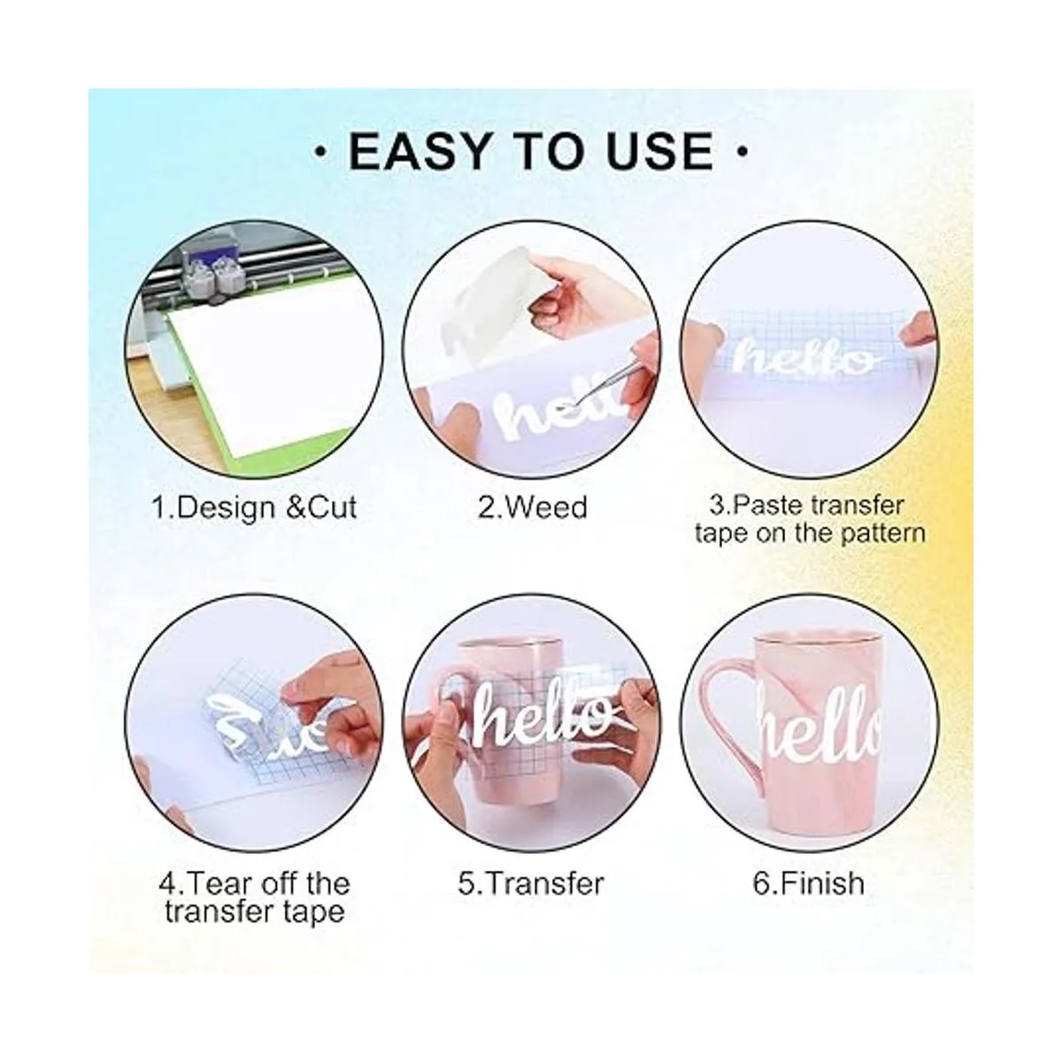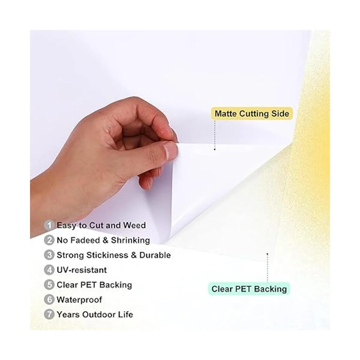 Parte trasera de PET transparente : utilizando nuestro vinilo permanente blanco con respaldo de PET, no tendrás que limpiar tu alfombrilla y preocuparte por daños en el proyecto. No más papel barato que se arruine y se separa del vinilo blanco en el proceso de corte. La nueva película protectora PET mejorará completamente la parte trasera del papel se adhiere a la alfombrilla.