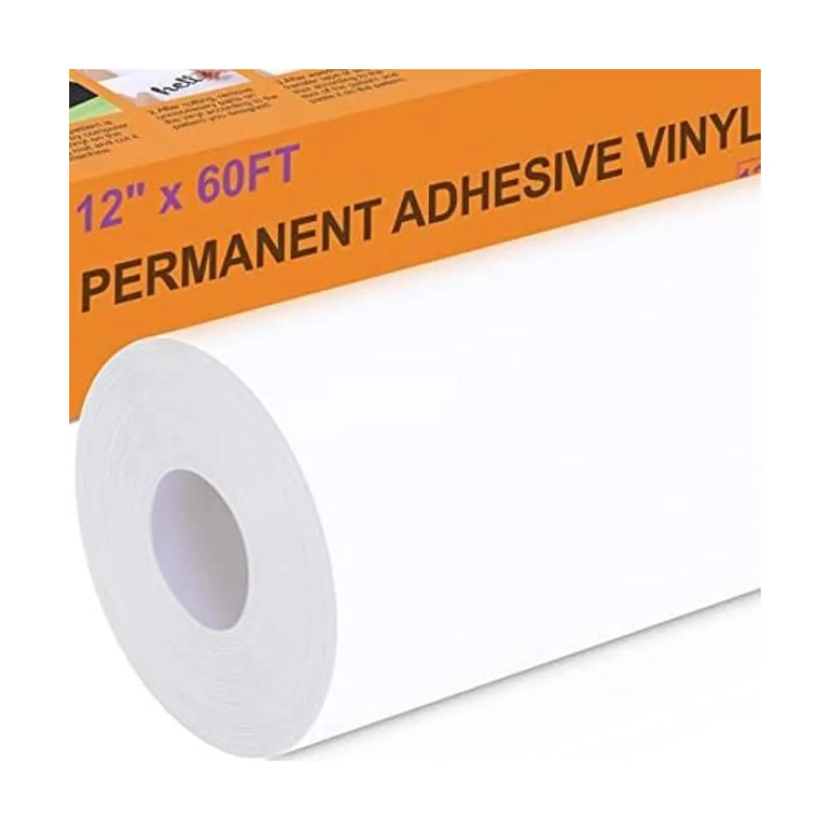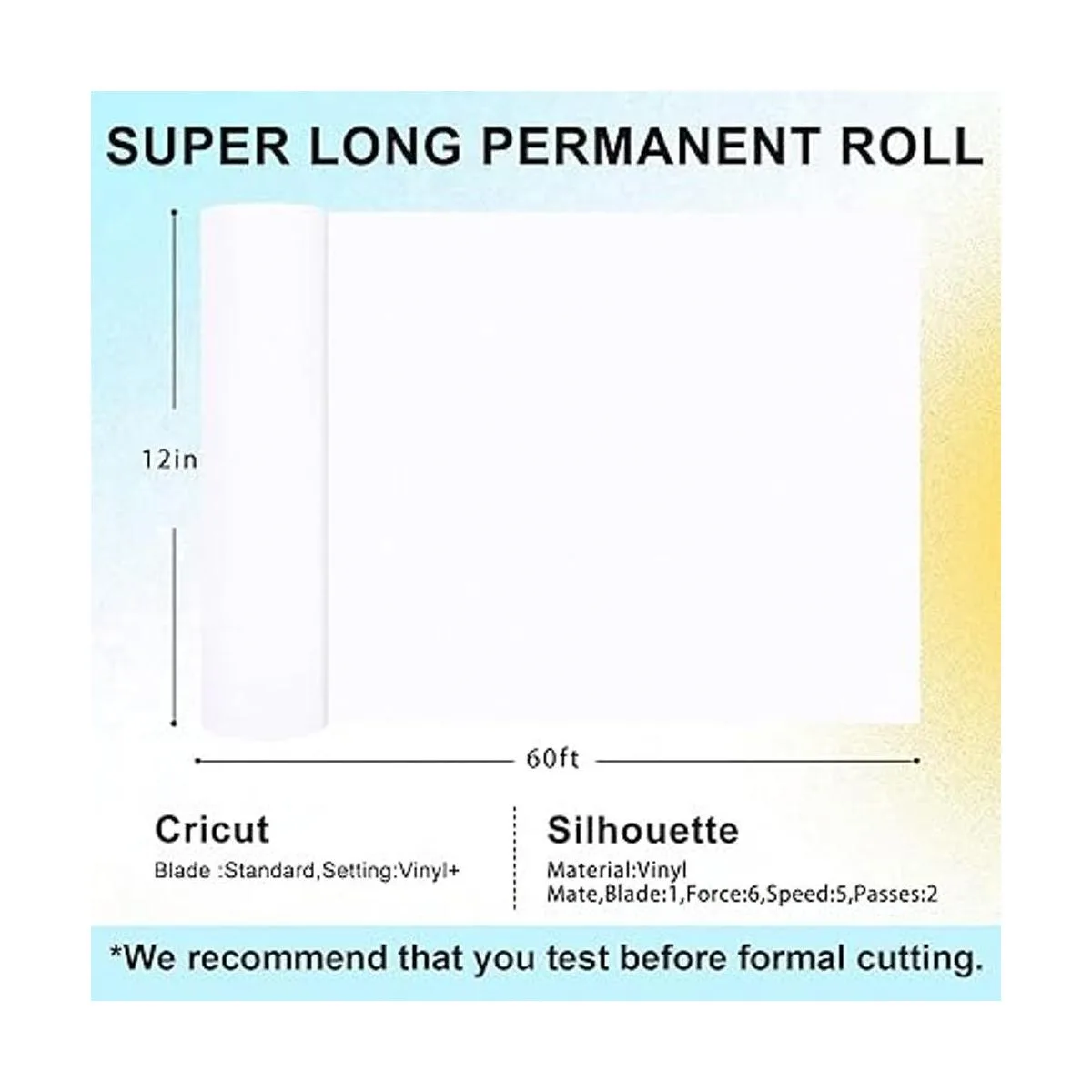 XSEINO Vinilo permanente blanco Rollo de vinilo adhesivo blanco de 12 x 60 pies para Cricut, Silhouette y otros cortadores, vinilo permanente para exteriores para tazas, calcomanías de decoración, calcomanías de automóvil, álbumes de recortes, letreros blanco mate