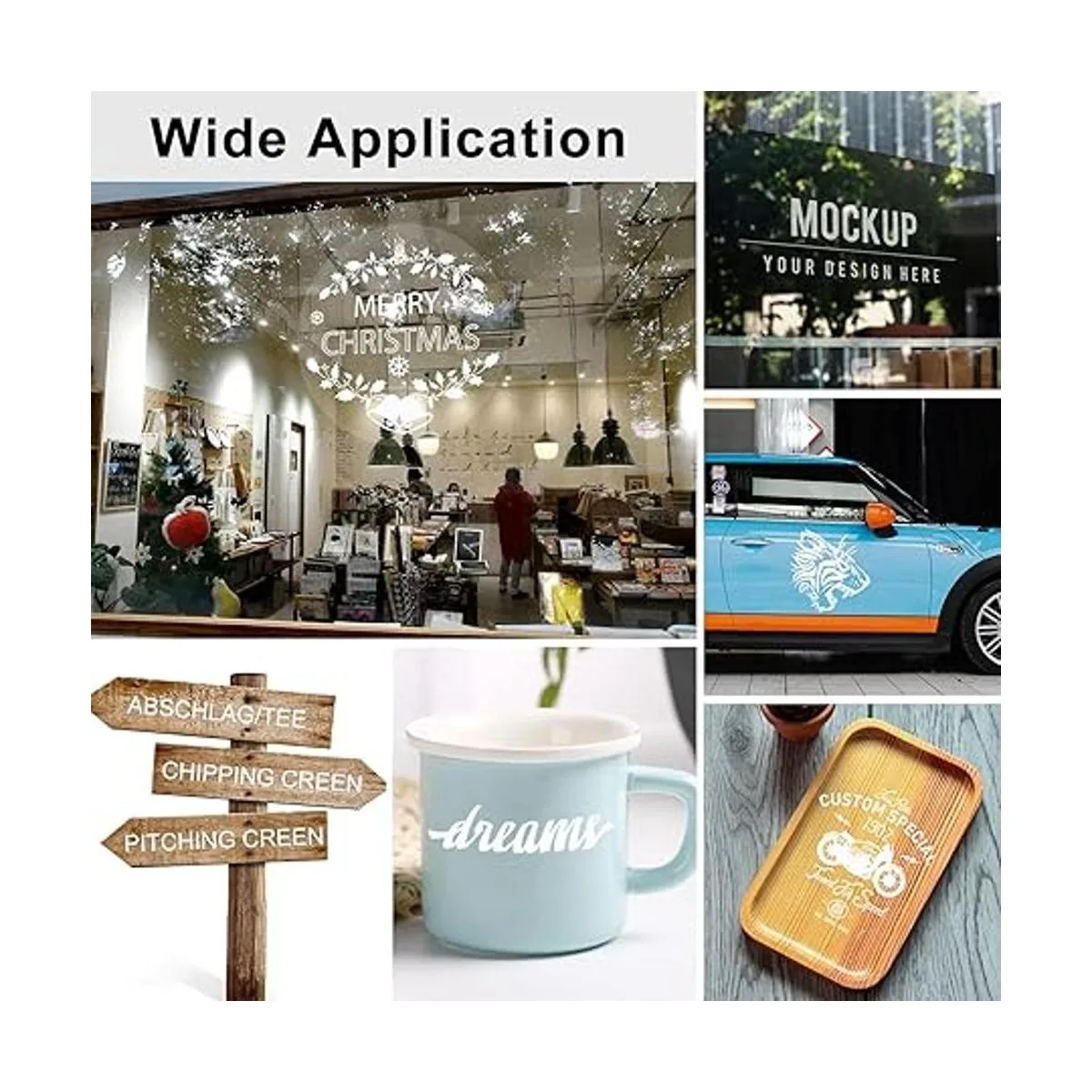 Amplia aplicación El rollo de vinilo permanente se puede utilizar en interiores y exteriores, incluyendo anuncios de ventanas, carteles, álbumes de recortes, letras, marcado, rayas, calcomanías, fundas de teléfono, fundas de laptop, etiquetas, tazas de café, tazas y decoración del hogar. Ahora, para empezar a crear algunos regalos encantadores y personalizados para tus amigos y familiares que van a amar y apreciar. Aviso: este vinilo no se puede utilizar para ninguna superficie de tela