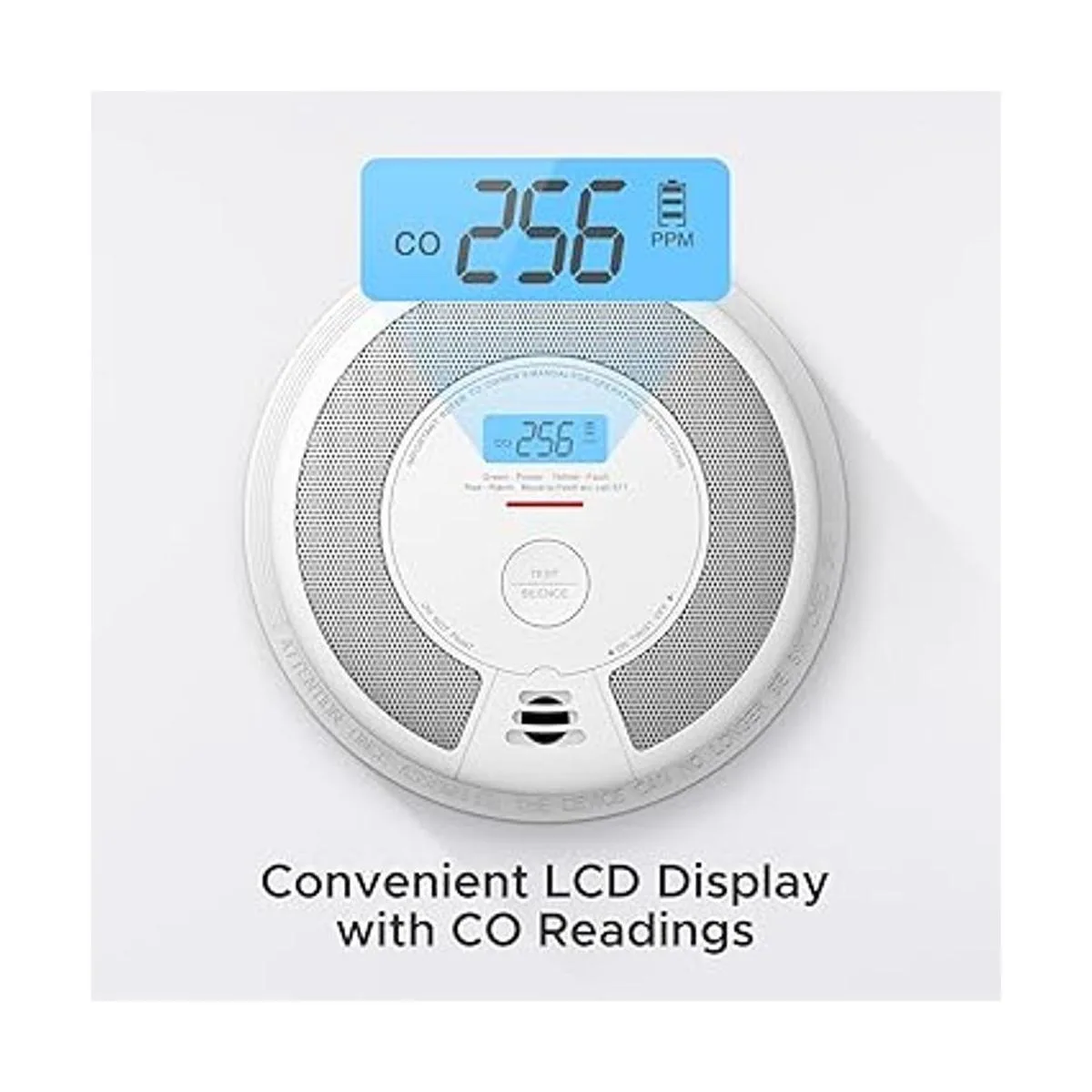 XSense Detector de alarma de monóxido de carbono de humo con batería de 10 años con pantalla LCD grande
