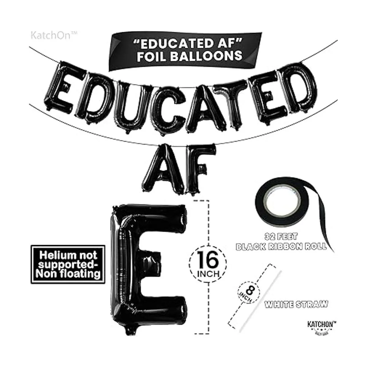 Gigante: 16 pulgadas Globos profesionales educados de lámina negra brillante: sube de nivel tus habilidades decorativas en la clase de decoraciones de graduación de 2022. Crea el mejor ambiente festivo con esta pancarta negra de globos educados AF en clase de decoraciones de graduación 2022. Este cartel educado AF tiene todo lo que necesitas con un gran tamaño de 16 pulgadas para suministros de fiesta de graduación 2022. Perfecto para decoraciones de graduación de la escuela secundaria 2022.