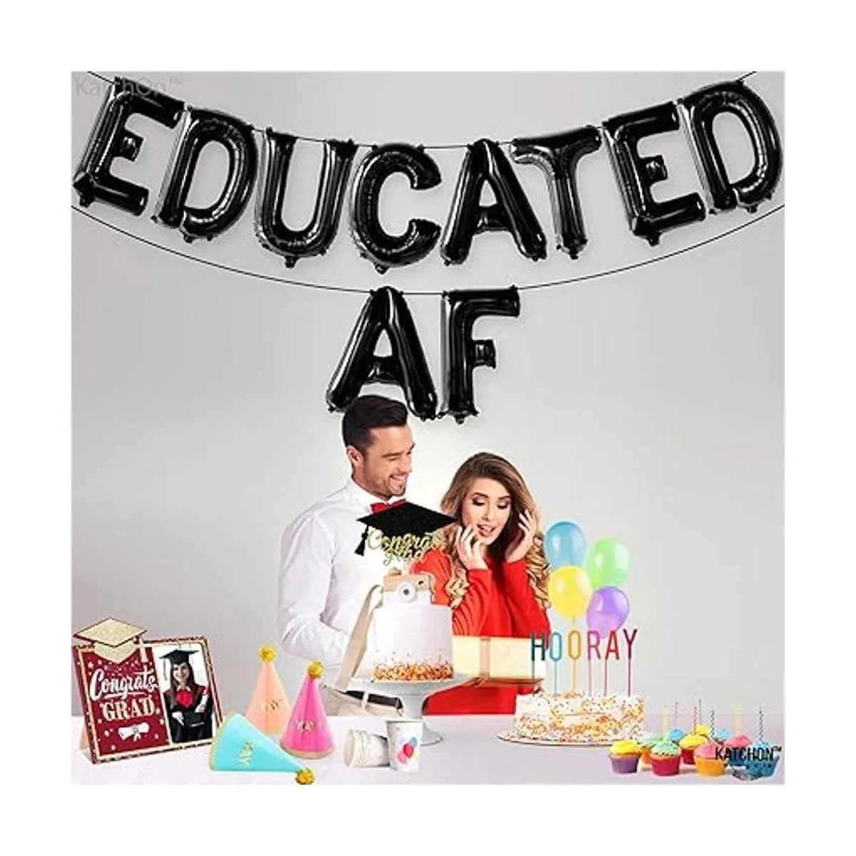 XtraLarge Banner de globos educativos de AF de 16 pulgadas, globo de graduación Decoración de fiesta de graduación 2022 Banner de felicitaciones para decoraciones de graduación 2022 Decoración educada