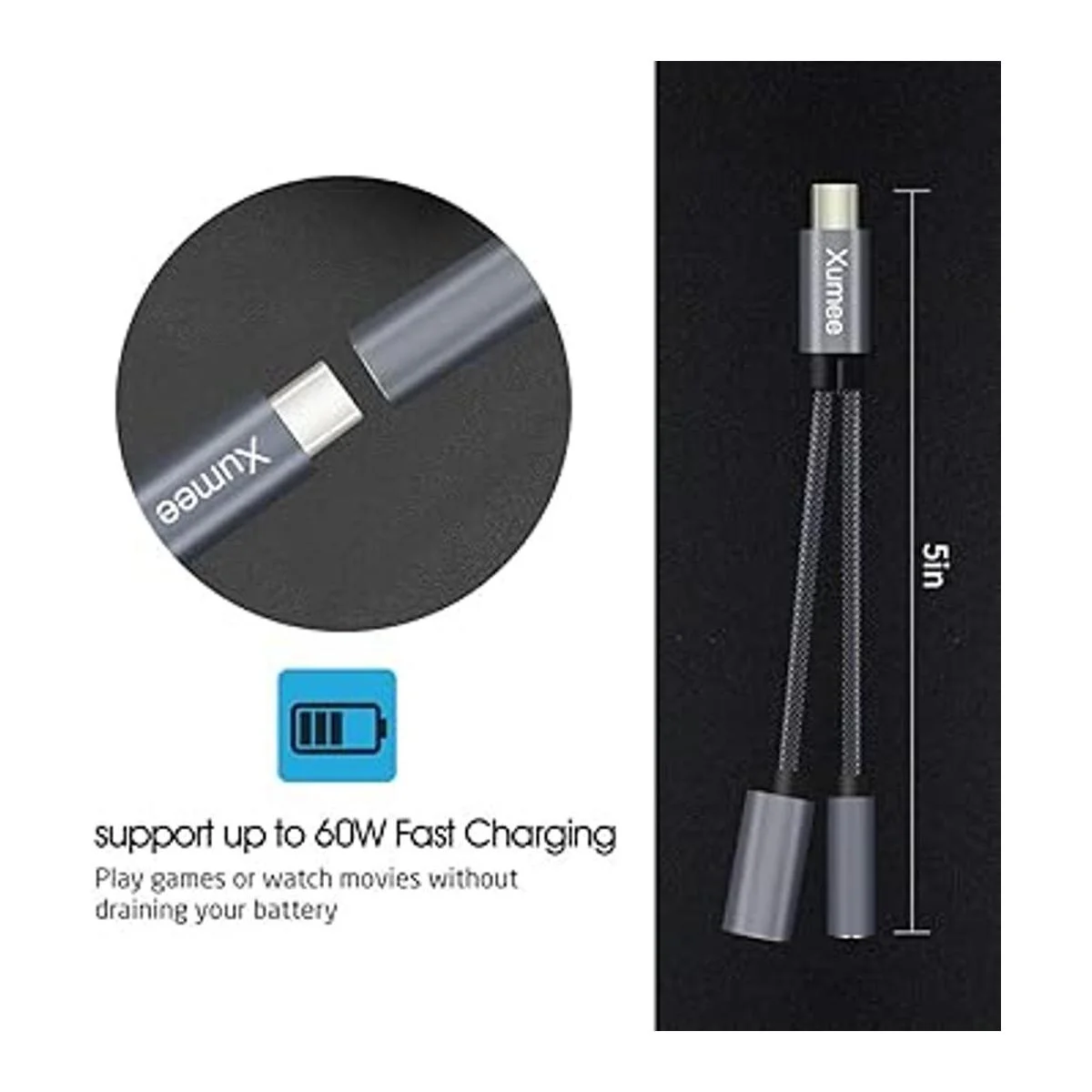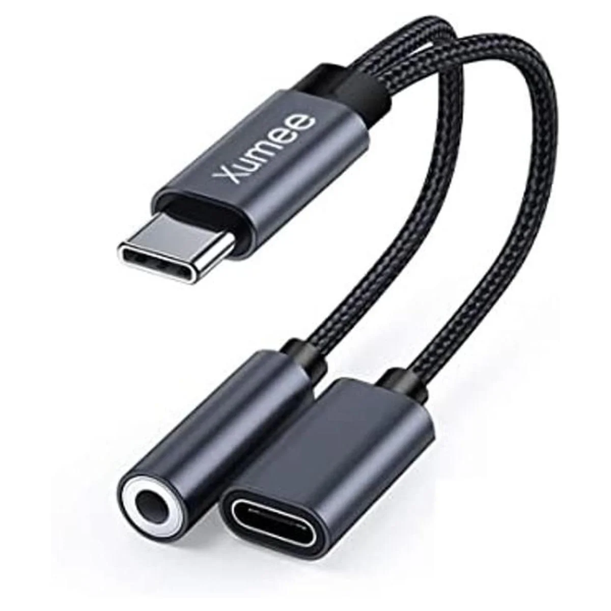 Xumee Adaptador de auriculares y cargador USB tipo C a 0.138 in, USB C 2 en 1 a conector de audio auxiliar DAC de alta resolución y cable de carga rápida compatible con Pixel 4 3 XL, Galaxy S22 S21 S20 S20 Note 20 gris