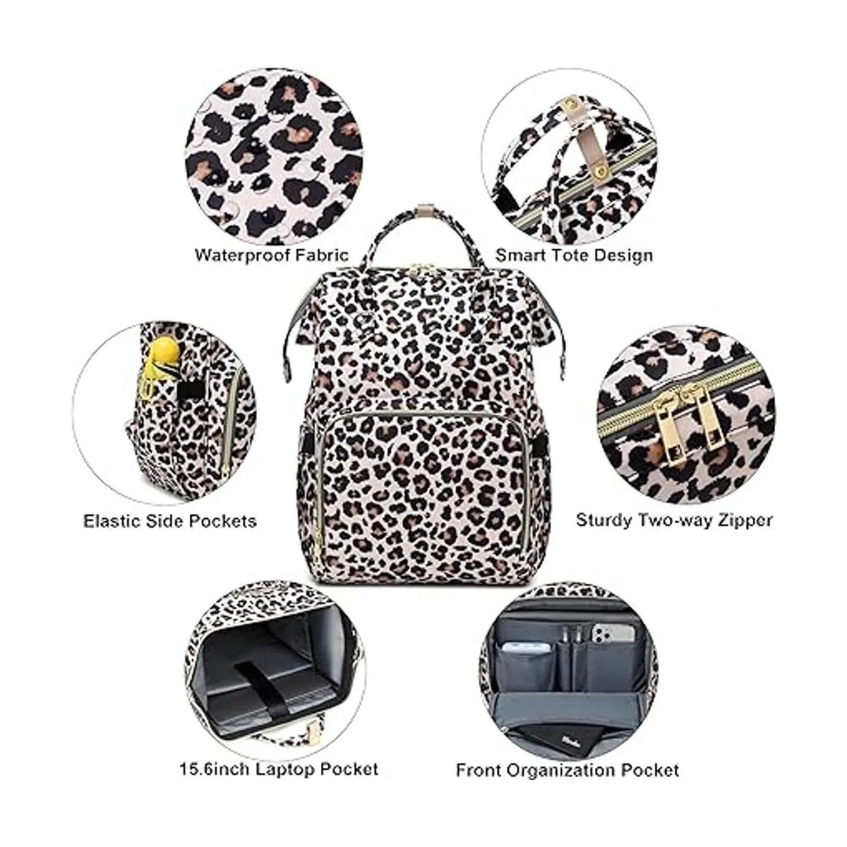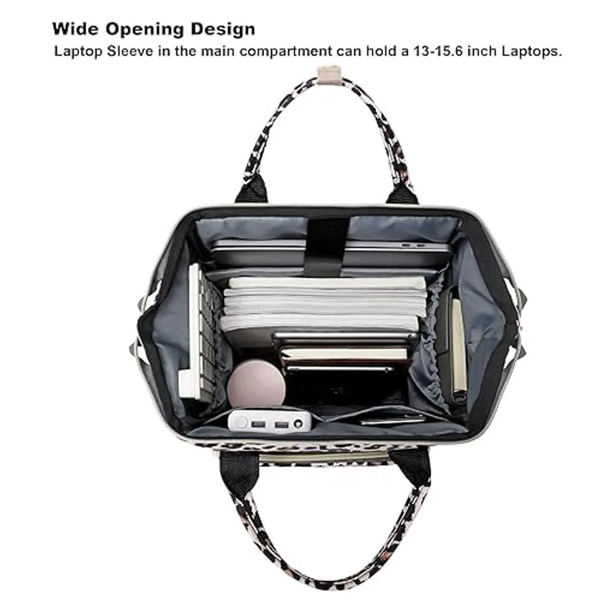Xunteny Mochila para laptop para mujer, mochila escolar de 15.6 pulgadas, mochila para computadora, para trabajo, negocios, viajes, Leopard