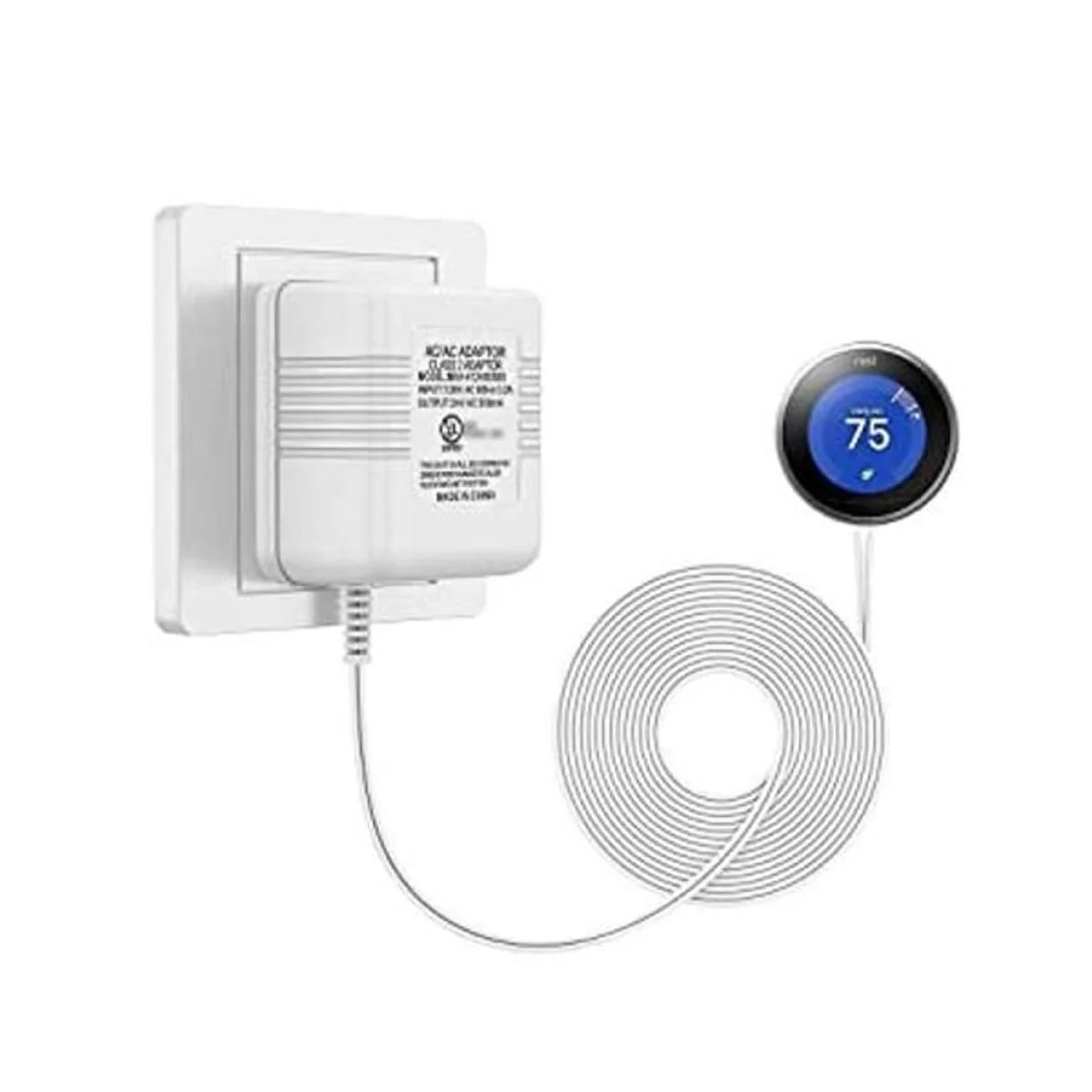 Xwartre Termostato certificado UL con cable C de 24 V, adaptador blanco compatible con Honeywell, Nest, Emerson, Ecobee, Wyze termostato y la mayoría de timbres cable de alimentación de 26 pies