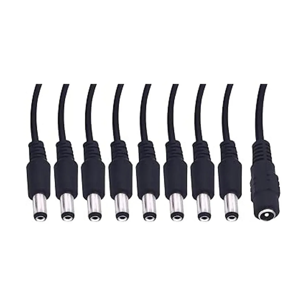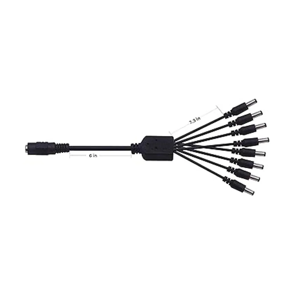 Especificaciones: diámetro del enchufe, 0.217 in exterior, 0.083 in interior, longitud del cable: 16,5 pulgadas, adaptador de alimentación CC Y Pigtail 1 a 8.