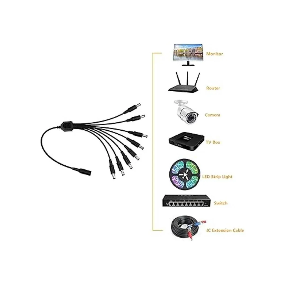 Alta eficiencia: este cable divisor de alimentación CCTV es muy perfecto para tu cámara de seguridad CCTV. Forma práctica y rentable de alimentar hasta 8 cámaras con 1 adaptador de corriente.