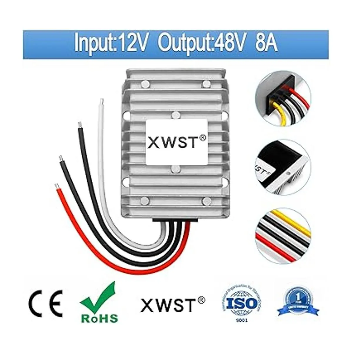 XWST Convertidor de voltaje de 12 V CC hasta 48 V 8 A 384 W, regulador de 48 voltios, fuente de alimentación impermeable DCDC Boost Transformador 12 V a 48 V 8 A