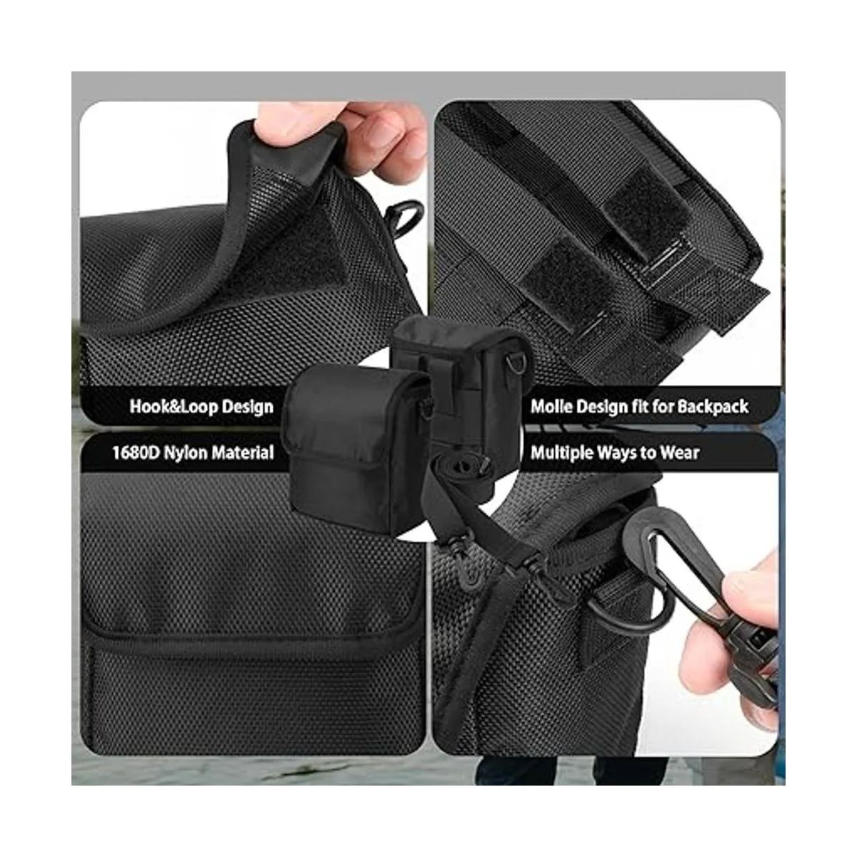 Accesorios de almacenamiento: el sistema Molle se puede fijar a la mochila o utilizar como hebilla de cinturón de cintura. que se puede utilizar para almacenar bolígrafos, llaves o teléfonos. Si no tienes prismáticos, también puedes utilizar esta funda para artículos de viaje.