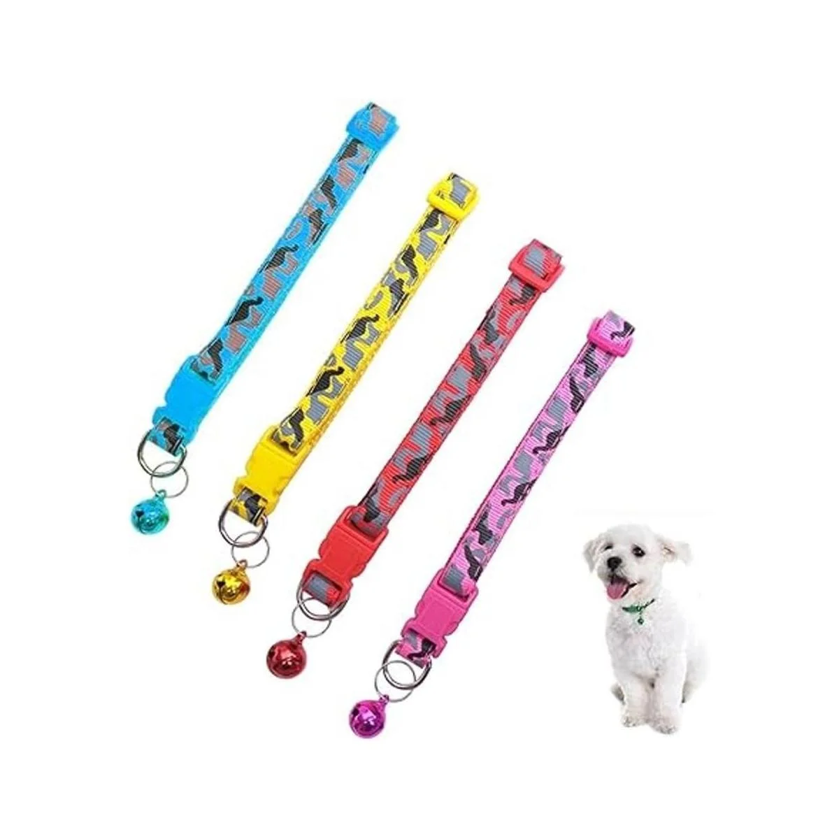 XxSmall Collar de perro para cachorros, collar de gato con campana para gatos o pequeños 4 piezas