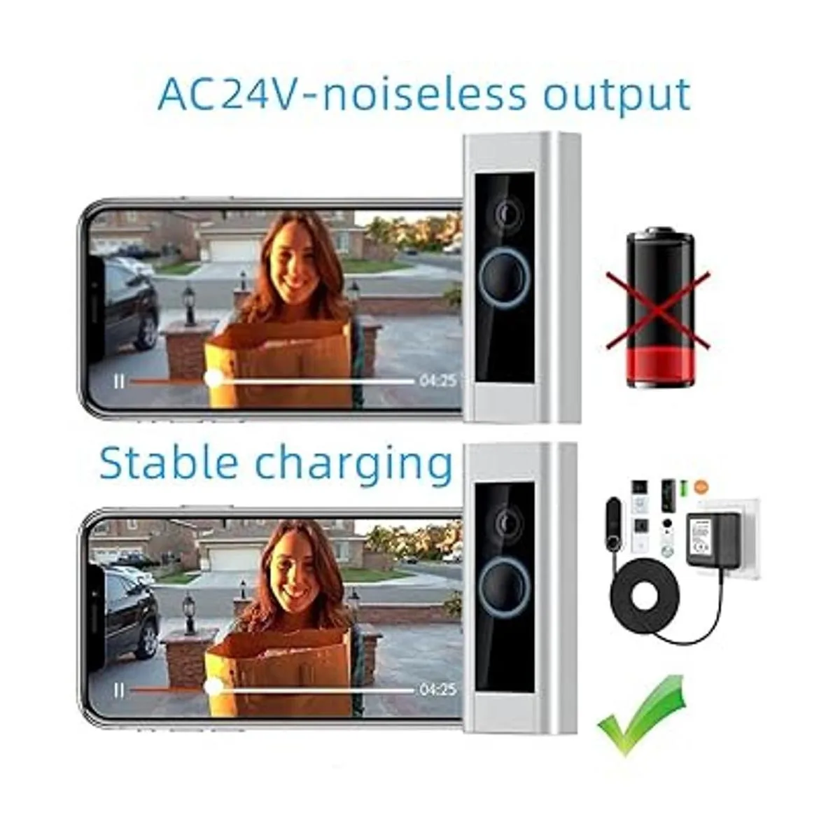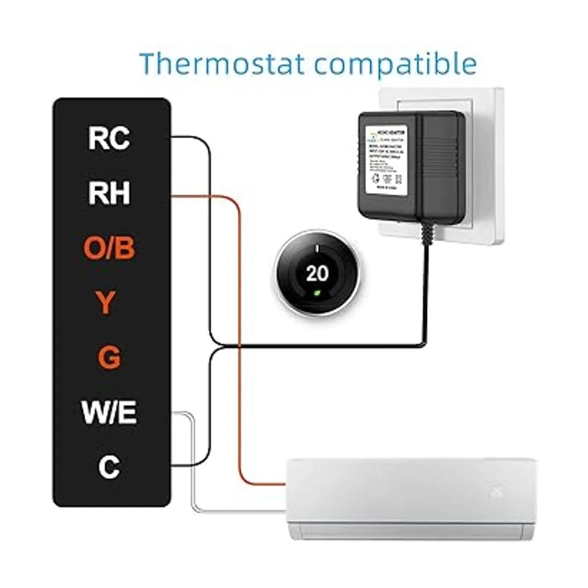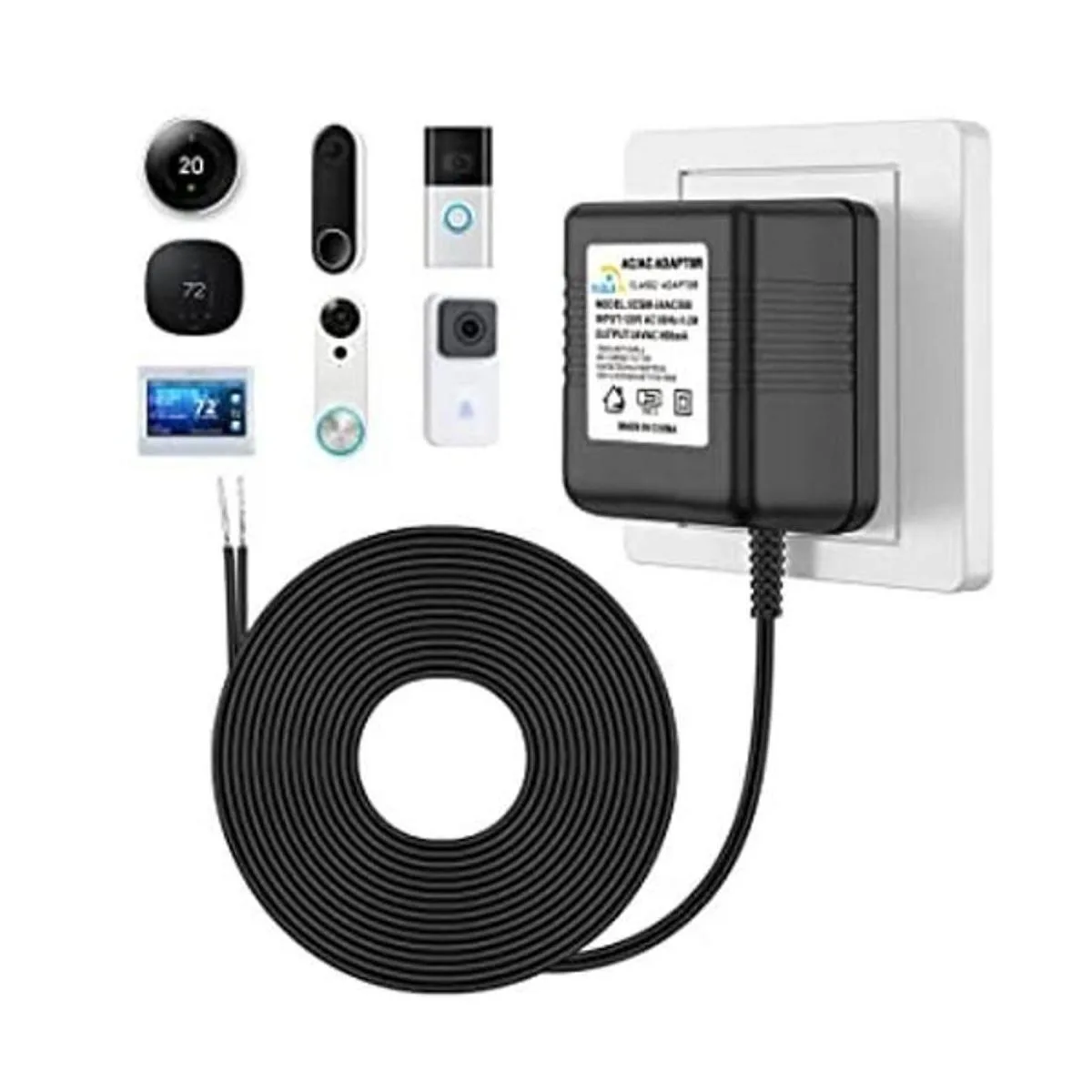 XZGm 24 Volt Transformer C Wire Adapter Doorbell Transformer Competible with 1624Volt All Versions of Ring Doorbell and Thermostat for Nest Ecobee, Sensi and Honeywell26ft Power Cable