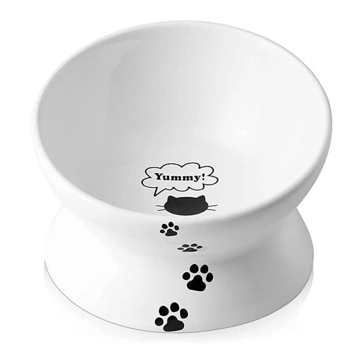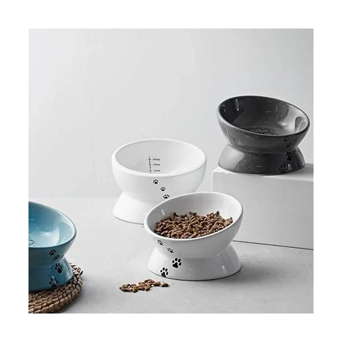 Y YHY Cuenco para gatos anti vómitos, cuencos elevados de comida para gatos, cuenco elevado inclinado para gatos, cuenco de cerámica para gatos de cara plana, perros pequeños, protege la columna vertebral de las mascotas, apto para lavavajillas
