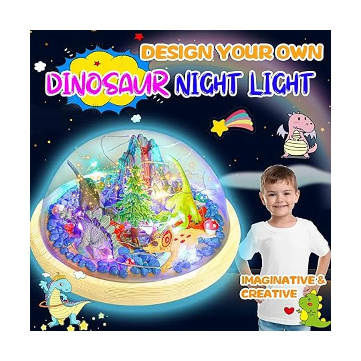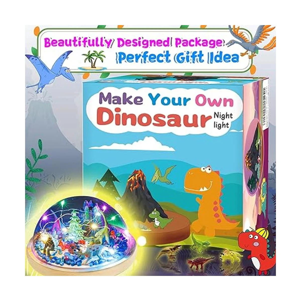 Luz nocturna de dinosaurios personalizada: viene con todo lo necesario para que los niños personalicen la luz nocturna de dinosaurio de cualquier manera que quieran, estarán tan orgullosos de sí mismos cuando el proyecto de luz nocturna esté terminado
