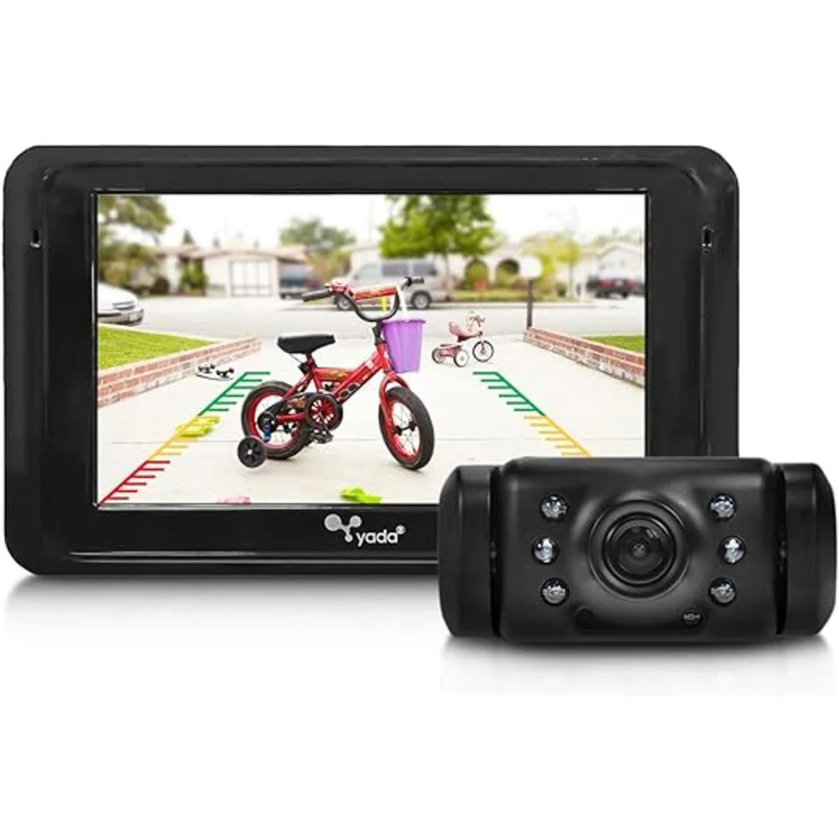 Yada Cámara de respaldo inalámbrica para automóvil con monitor HD de 5 pulgadas, cámara de respaldo de marcha atrás, asistente de estacionamiento ajustable con visión nocturna impermeable para automóvil, camión, camioneta, SUV, camping