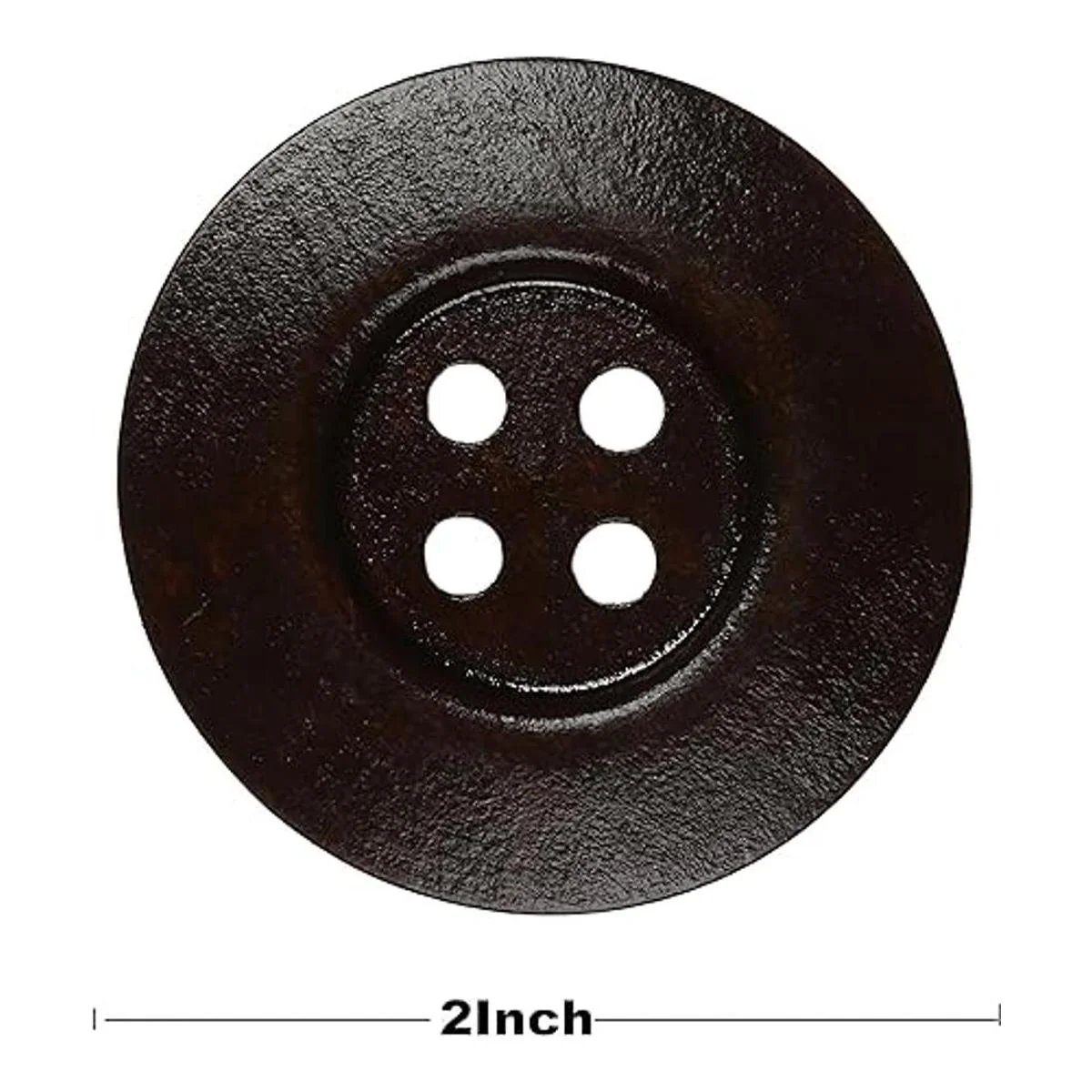 YAKA 30 botones redondos de madera de color marrón, 4 agujeros, botones de manualidades para coser ropa, botones de costura de gran tamaño de 2.0 in para manualidades
