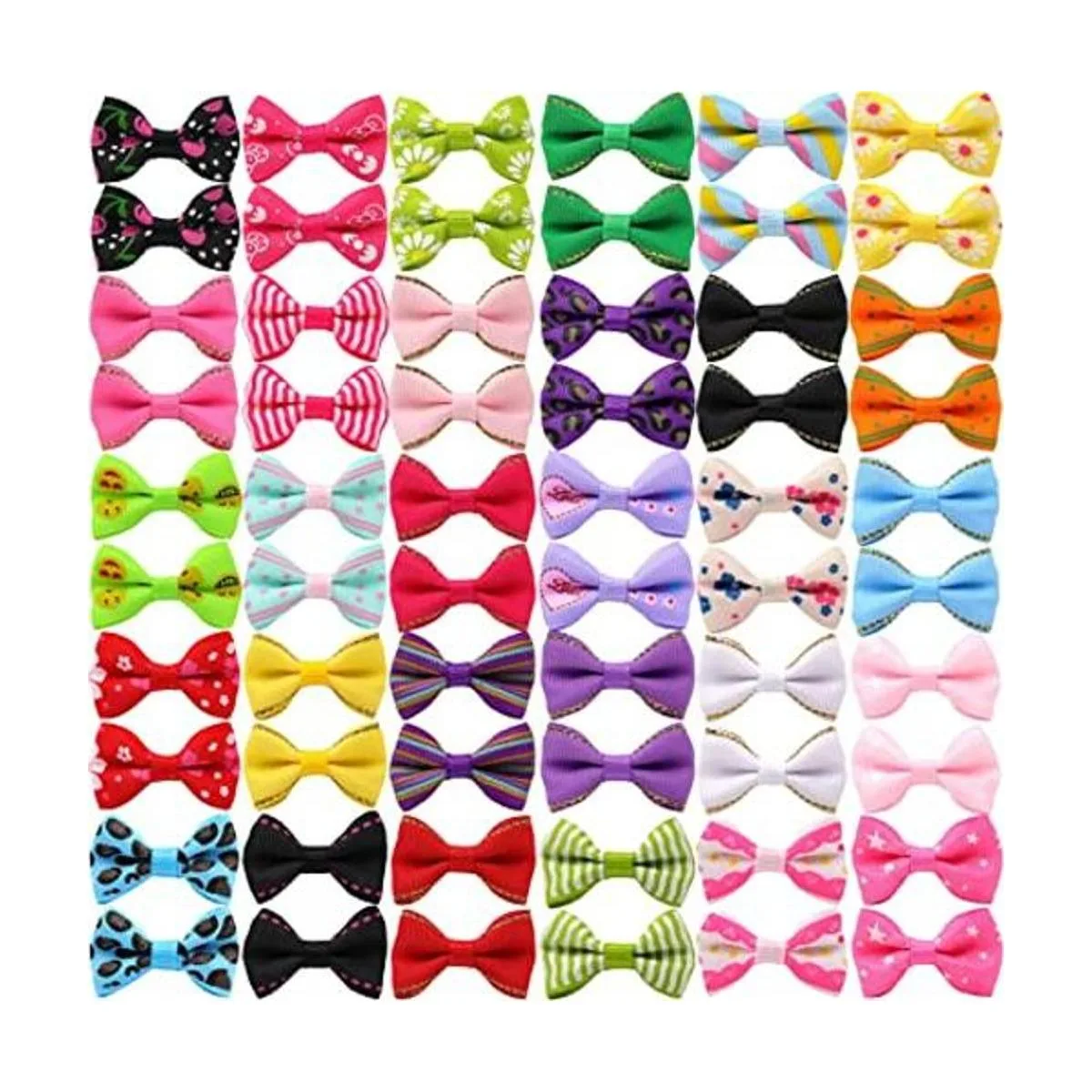 YAKA 60 lazos para el pelo con bandas de goma o clips hechos a mano para el pelo con arco para mascotas 60 piezas, bonitos patrones