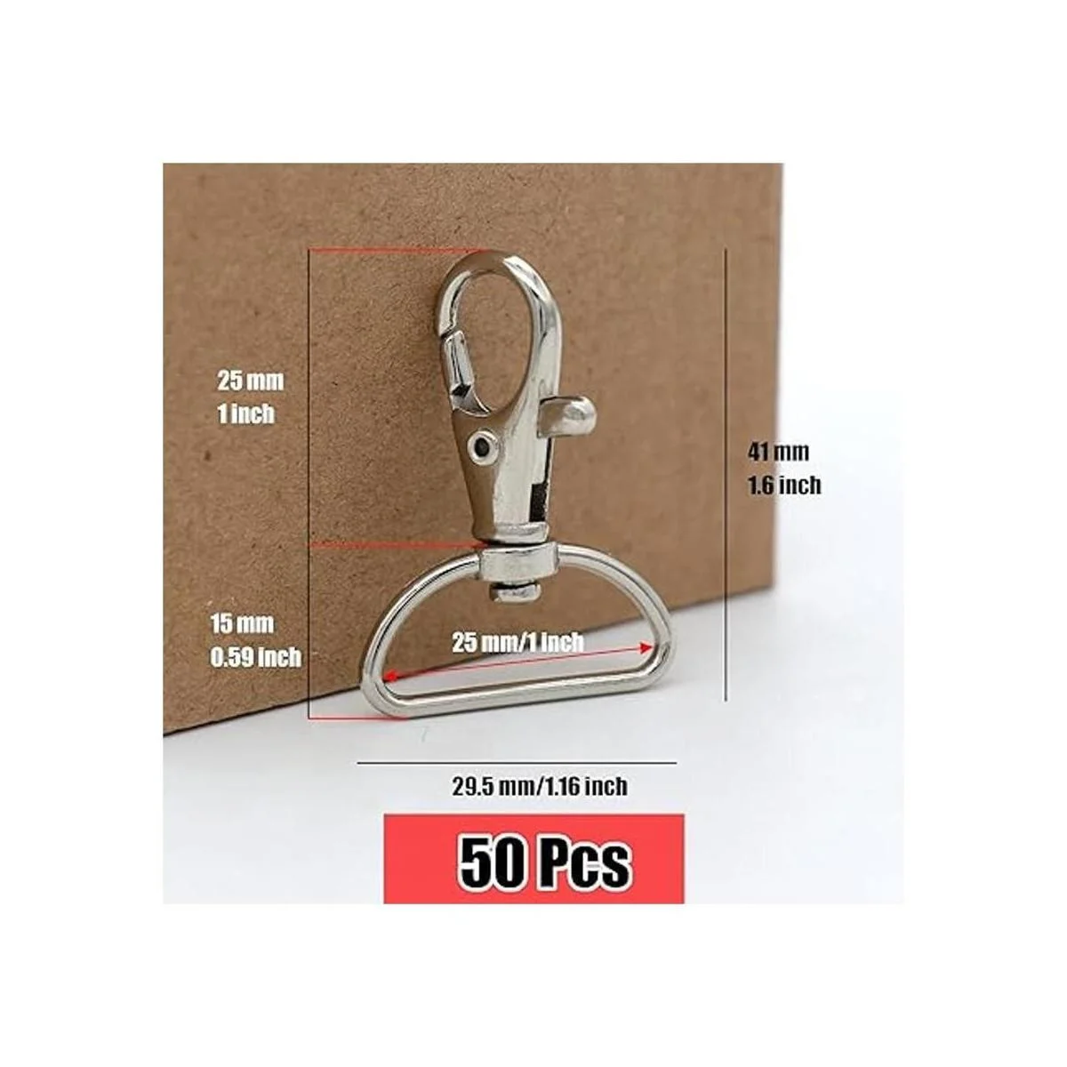 YAKA Paquete de 50 cierres de pinza de langosta de metal prémium de 360 giratorios de cierre giratorio con anillo en D ancho interior del anillo en D de 1 pulgada