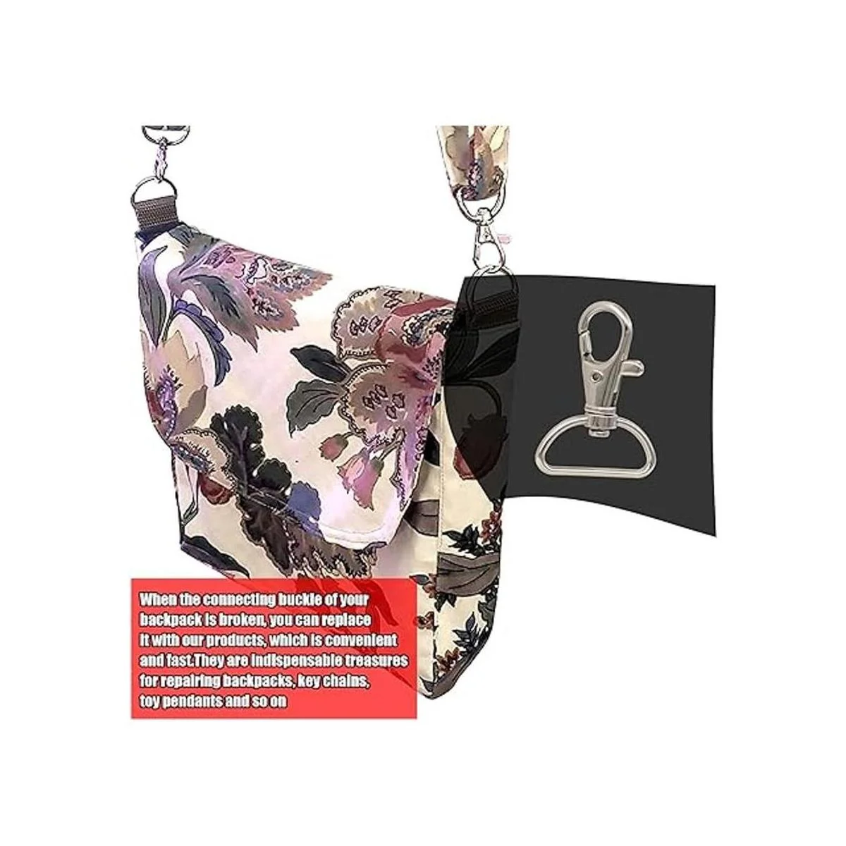 Cantidad: 50 unidades por paquete. Color: plateado. Tamaño: ancho interior del anillo en D. Medidas totales: 1.57 x 1.18 pulgadas. Material: cierre giratorio de aleación duradero y de alta calidad.