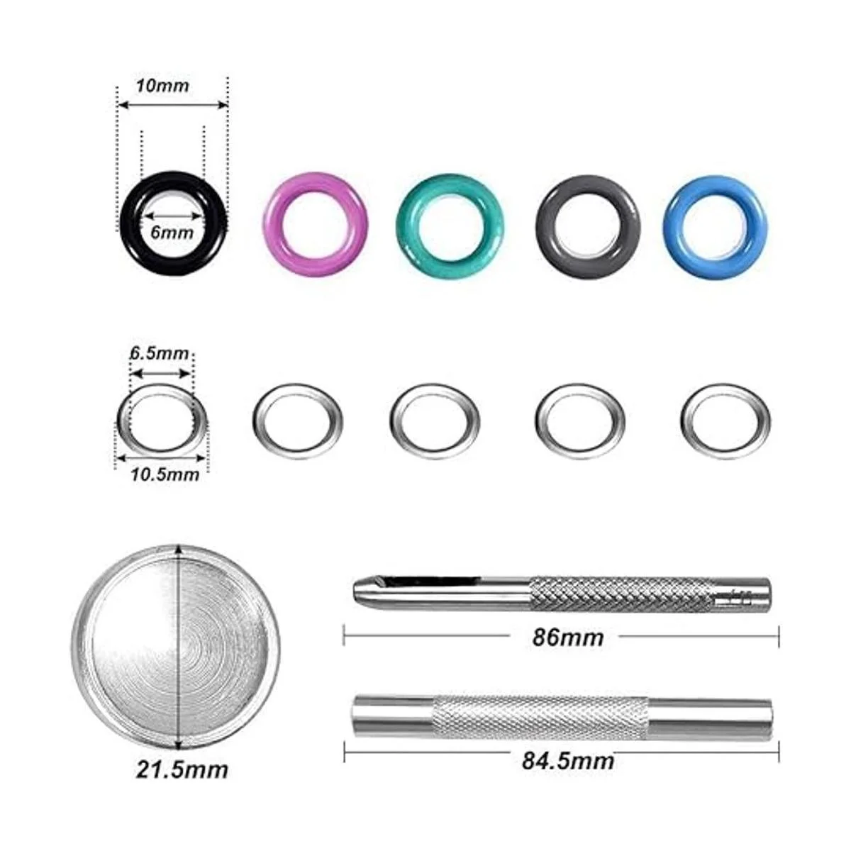 Yakamoz 300 Set 0.236 in 14 Pulgadas Multicolor Ojales de Metal Set con Herramienta de Instalación para DIY Proyecto Artesanía Ropa Zapatos para Zapatos Ropa
