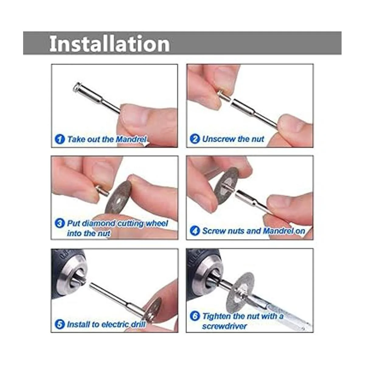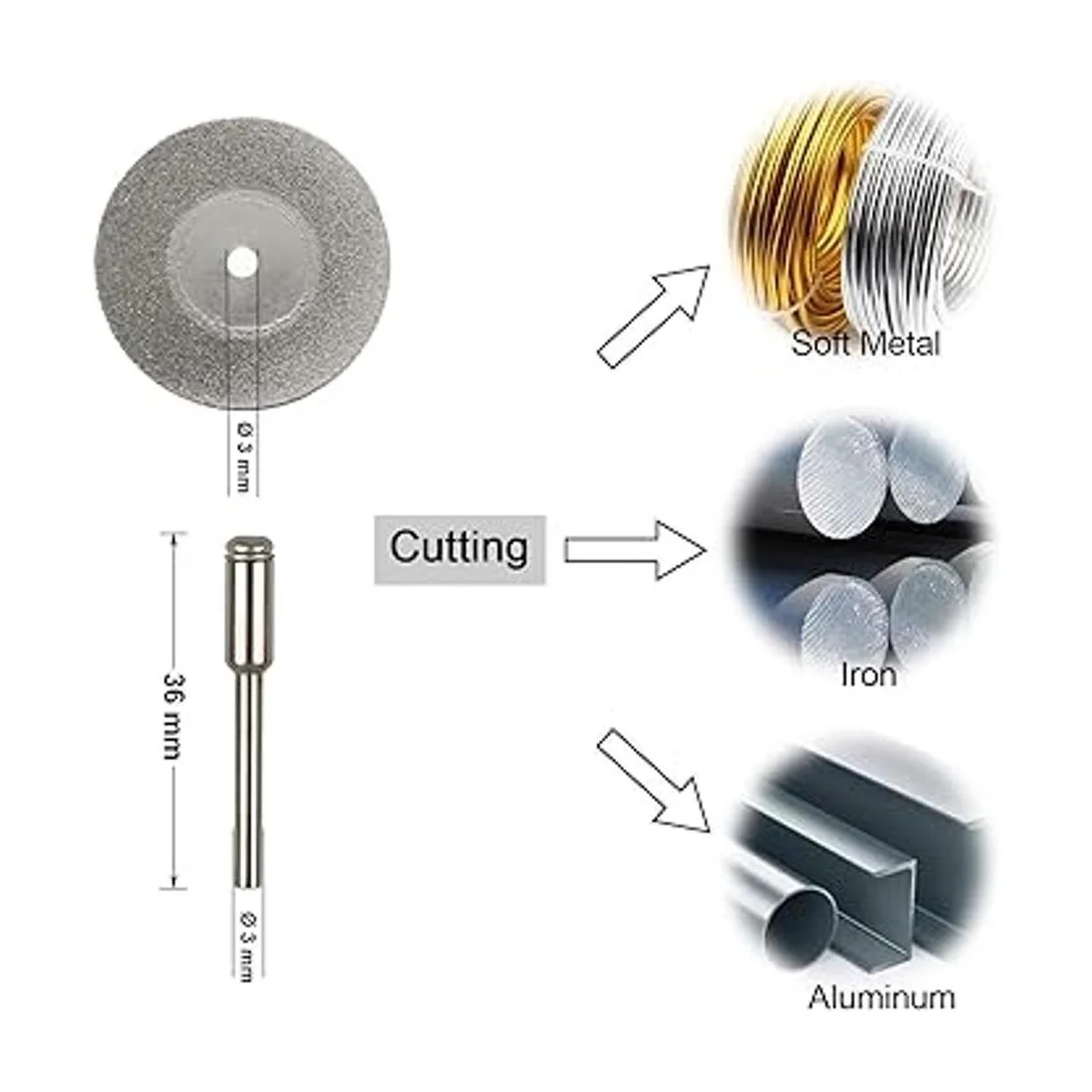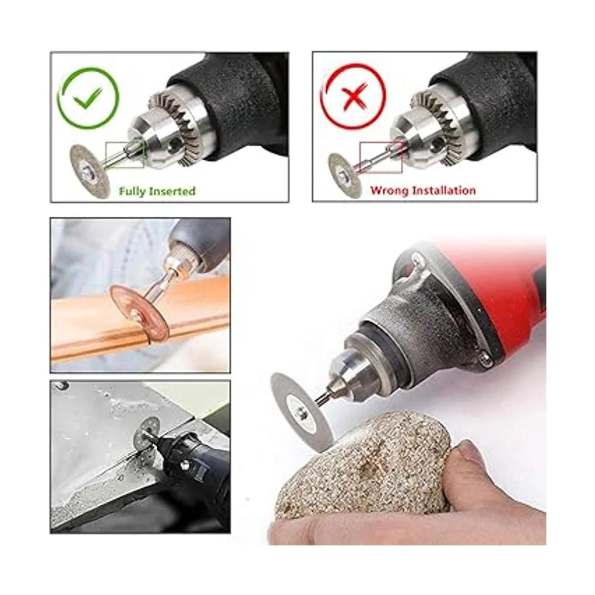 Vienen con 2 mandriles de vástago de 0.118 in, accesorios de corte ideales para herramientas rotativas Dremel o taladros eléctricos.