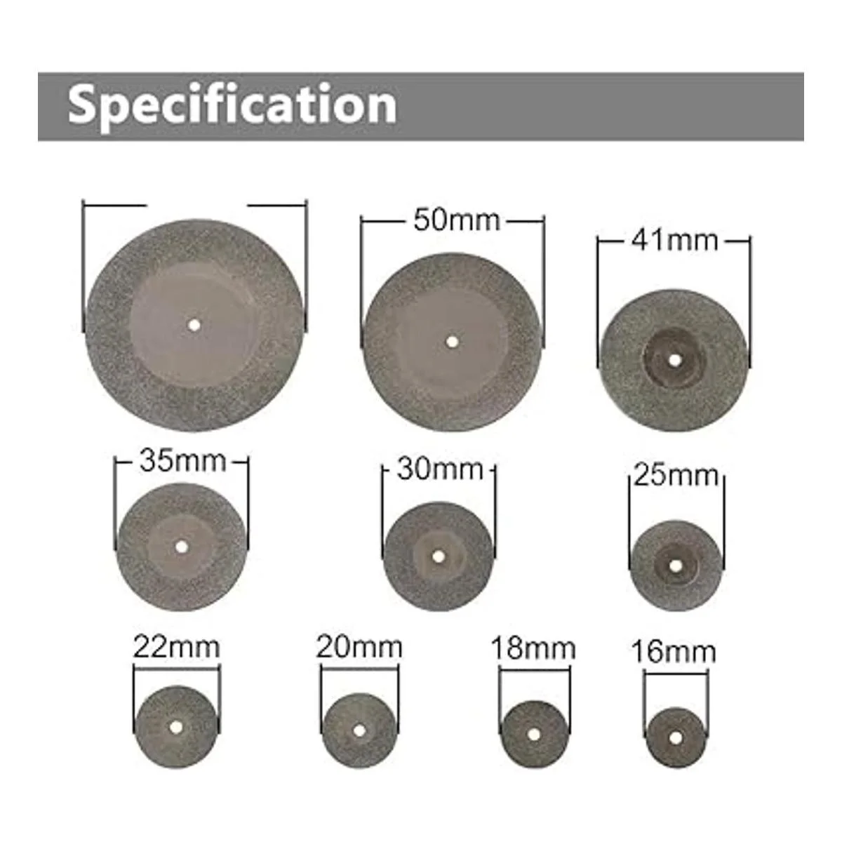 Total 10 ruedas de corte de diamante, diámetro de corte: 16 18 20 22 25 30 35 40 50 2.362 in, grosor: 0.024 in, diámetro del mandril: 0.118 in 2 unidades