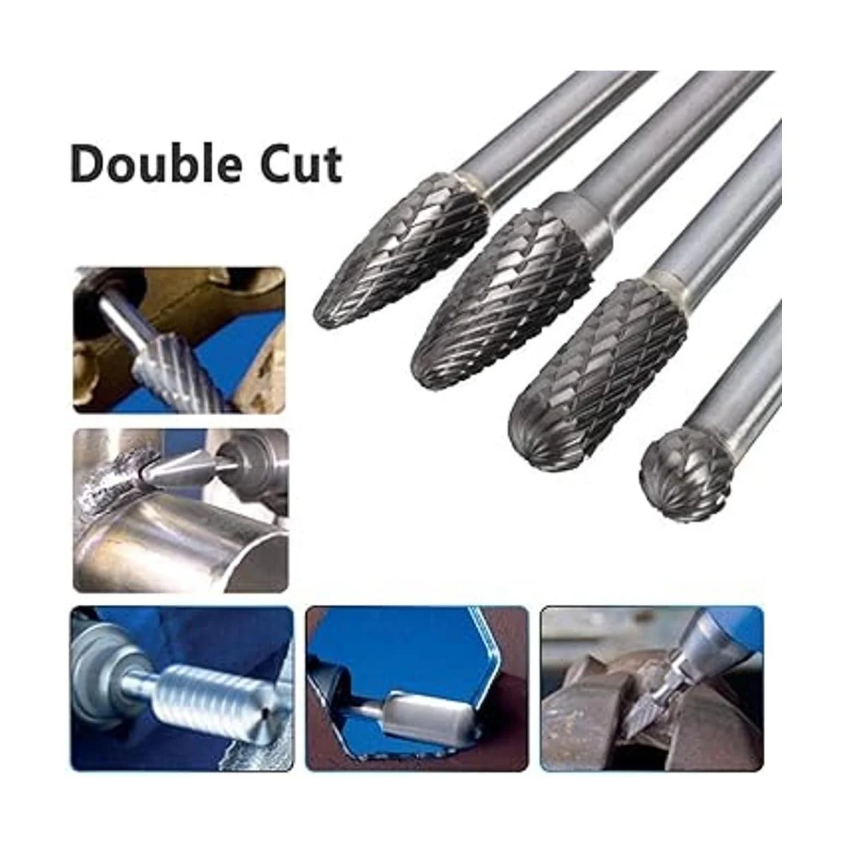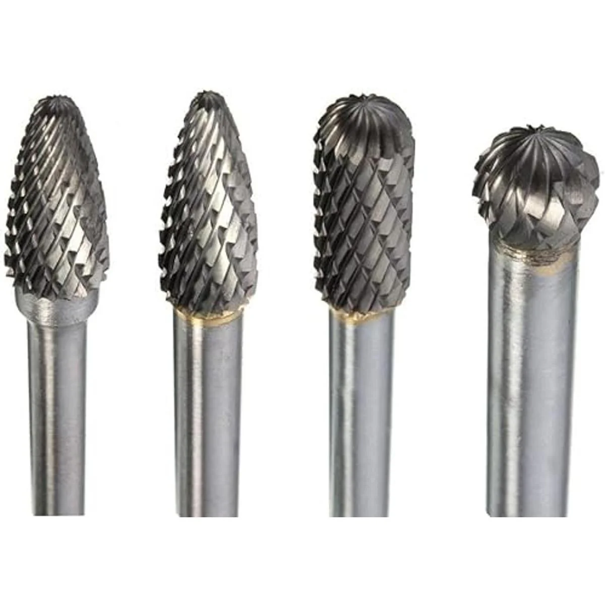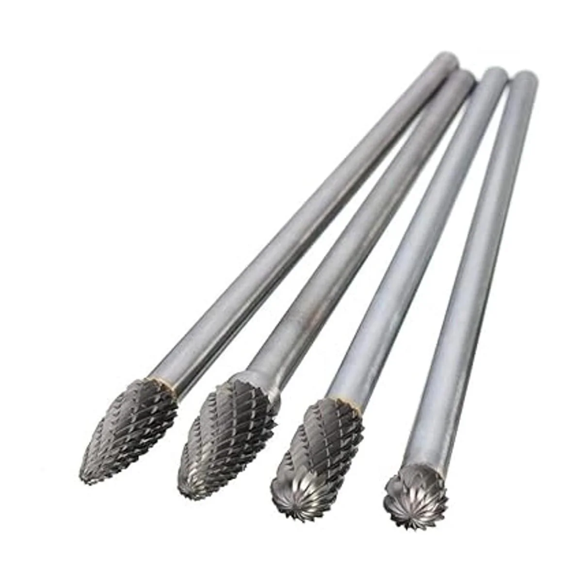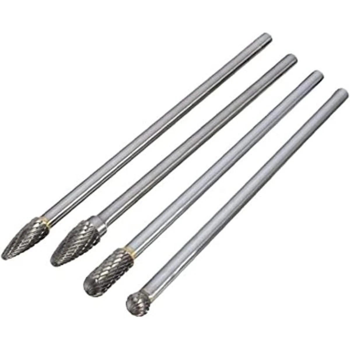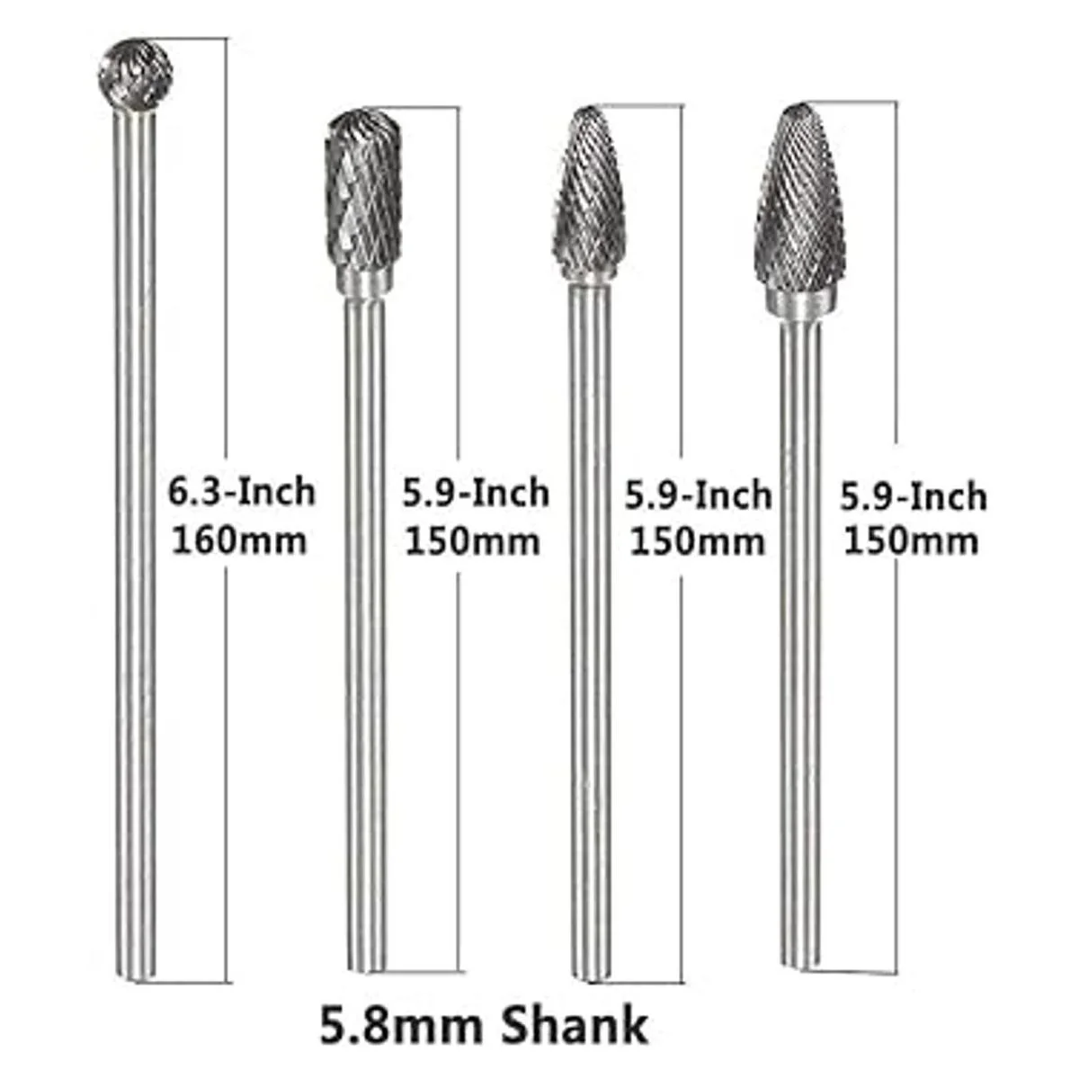Yakamoz Juego de 4 piezas de 5,9 pulgadas de largo de acero de tungsteno sólido carburo rotatorio quemadores con vástago de 14 pulgadas se adapta a herramienta rotativa para carpintería perforación tallado grabado