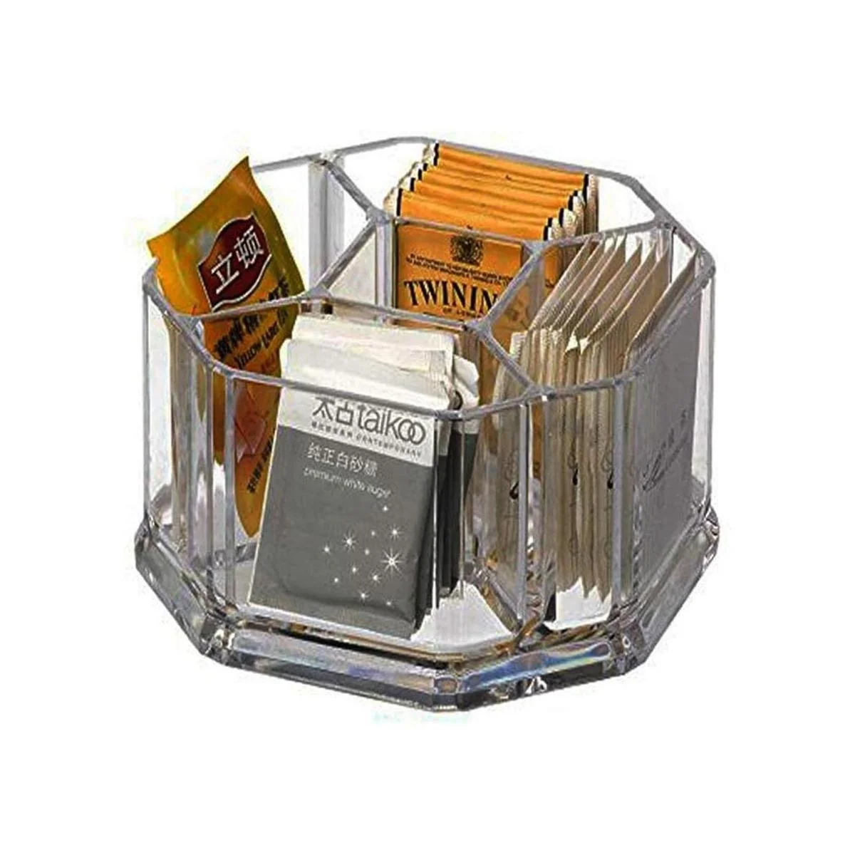 Yakri Soporte acrílico para bolsas de té de café, azúcar, organizador de habitación de invitados, 5 departamentos para cocina, hogar, YTBH002