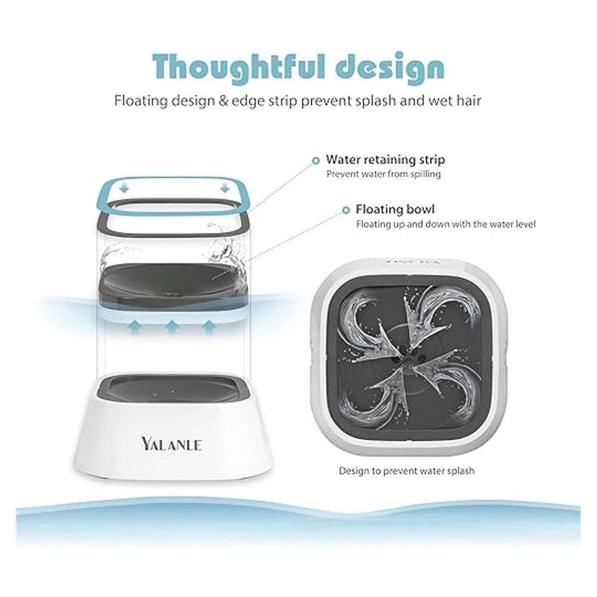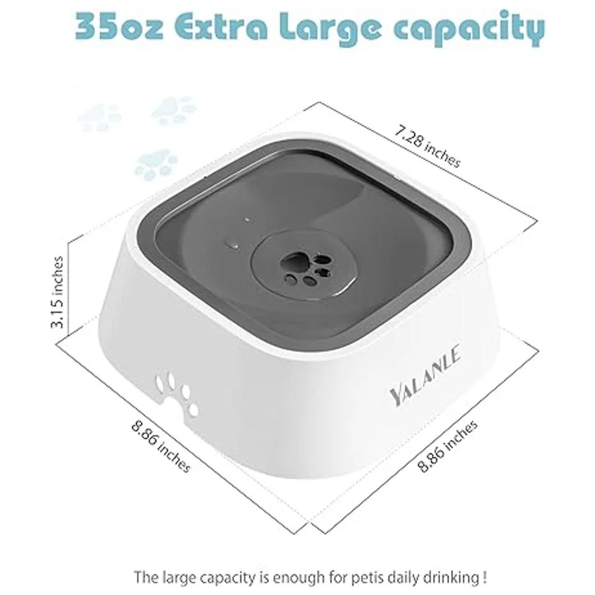 Yalanle Bol de agua para perro sin derrames, alimentador de agua lenta, dispensador de agua antideslizante para mascotas, 35oz cuenco de agua para perros y gatos, con regalos extra