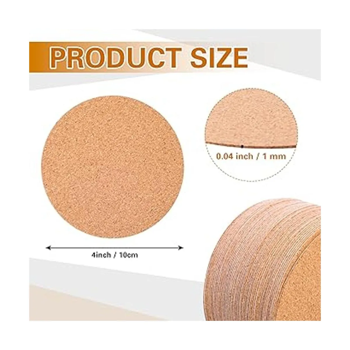 120 piezas en total: recibirás un total de 120 piezas de azulejos de corcho autoadhesivos, cantidades suficientes para satisfacer tus necesidades diarias y reemplazos, miden aproximadamente 3.9 in de diámetro, el grosor es de aprox. 0.039 in, si crees que son demasiado delgadas, puedes utilizar doble capa, ten en cuenta que el tamaño del producto puede tener un error de 0.1 in