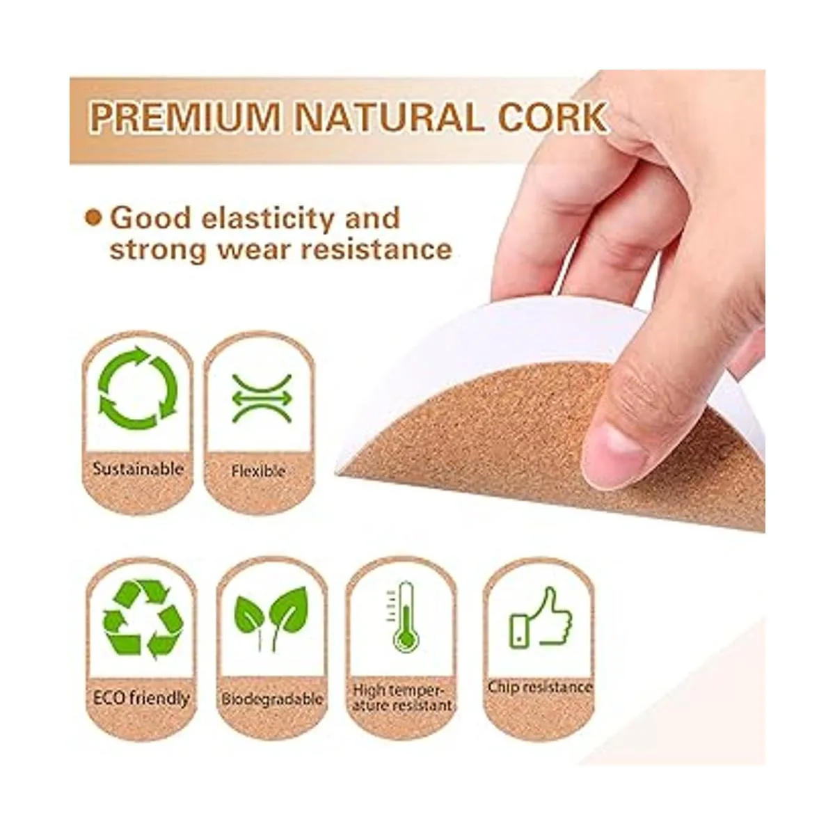 Material de calidad: las hojas adhesivas de corcho están hechas de corcho de calidad con buena adherencia en la parte posterior, son fiables y resistentes, no se rompen ni se deshilachan fácilmente, con superficies rugosas para antideslizante, apoyo para un uso prolongado