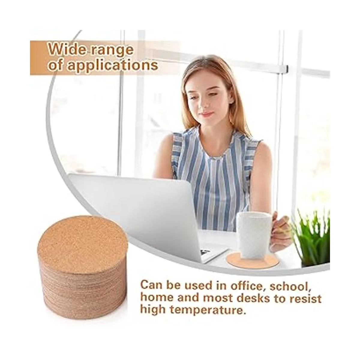 Amplia gama de aplicaciones: el respaldo de corcho para posavasos se puede recortar en cualquier forma o tamaño, no solo se puede aplicar como posavasos, sino también como alfombrillas para mesas, sillas, sofás, adecuado para el hogar, la oficina y la escuela; además de eso, los azulejos de corcho son aplicables para personas para manualidades para pegar en refrigerador, azulejos y otras superficies