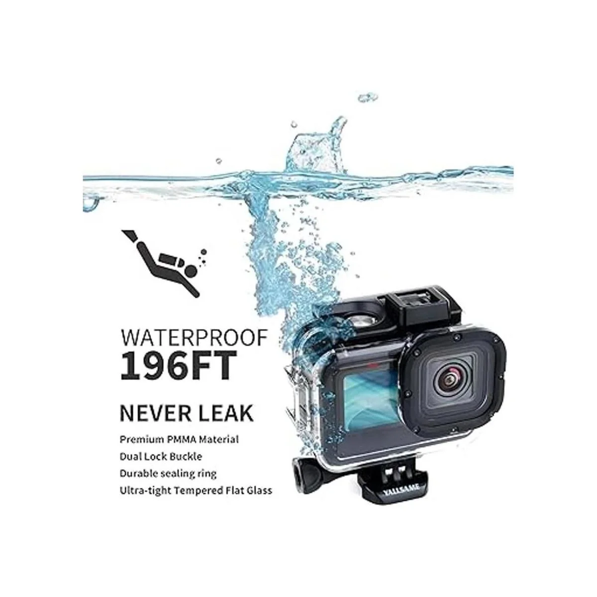 YALLSAME Carcasa impermeable de buceo para cámara de acción GoPro Hero 11 10 9 negra, compatible con la más profunda experiencia subacuática de 196 pies, ideal para GoPro 11 10 9 buceo, esnórquel, fotografía subacuática