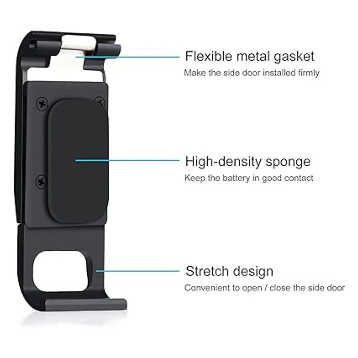 YALLSAME Cubierta de batería de aluminio para puerta lateral GoPro Hero 11, 10, 9, negro, accesorios de repuesto para puerta GoPro 11, 10, 9, negro, adecuado para grabación continua de vlog, reparación de cámara