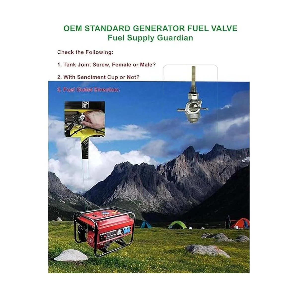 Compatible con muchas válvulas de apagado del tanque de combustible del generador de 650 W a 2000 W como todas las válvulas de combustible Power, Briggs Stratton 310574GS 310573gs 193272GS 204743GS, OH3384, ETQ TG1200, etc., Harbor Freight 90, Yamaha EF2000iSS. v2 EF6 300iSDE EF2400iSHC, etc.