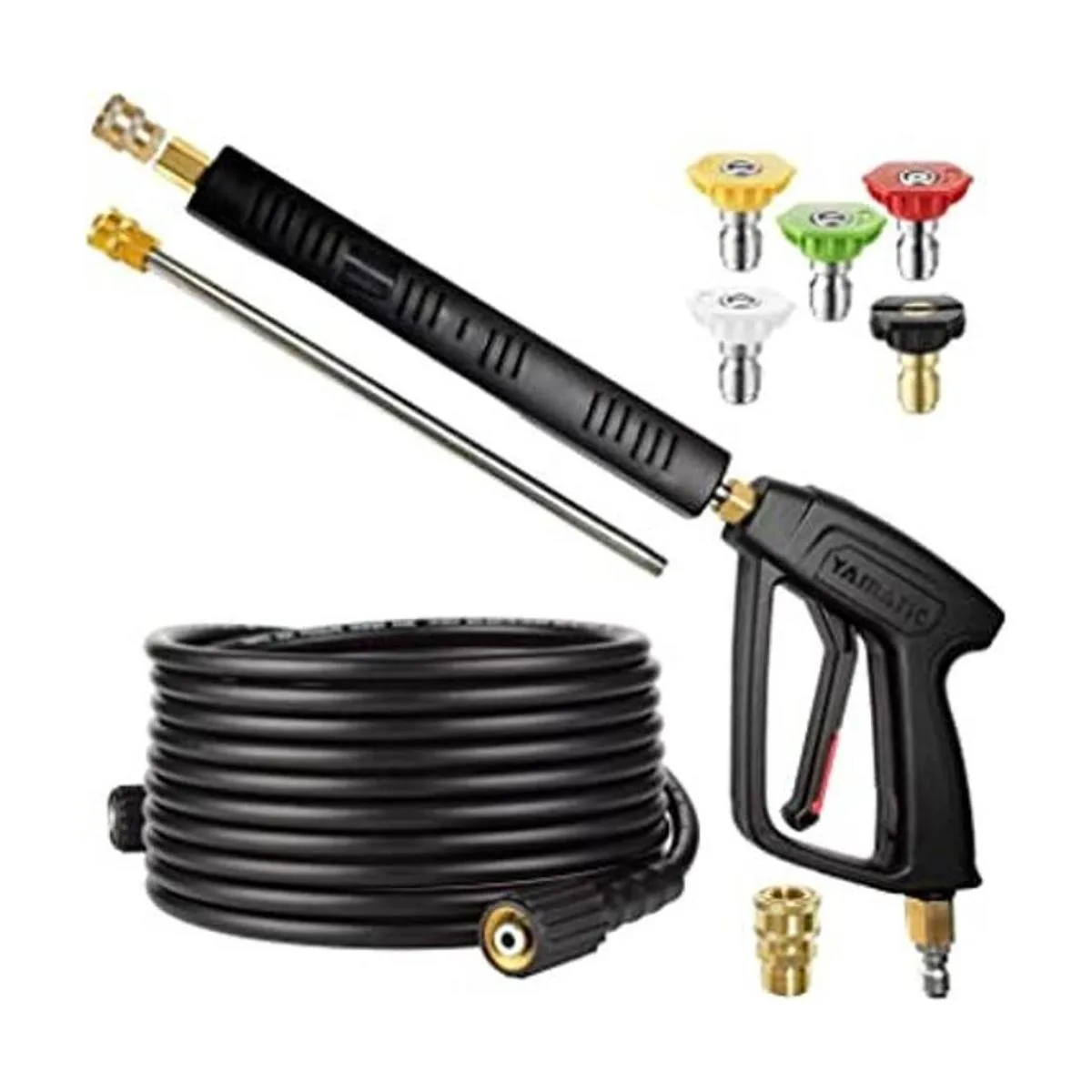Servicio económico Si tienes algún problema con este kit de manguera y varita, no dudes en enviar un mensaje a YAMATIC en cualquier momento, estamos en línea 7 x 24 listos para garantía y apoyo. Bienvenido a comprobar otros accesorios de lavado a presión en la tienda YAMATIC Power Center.