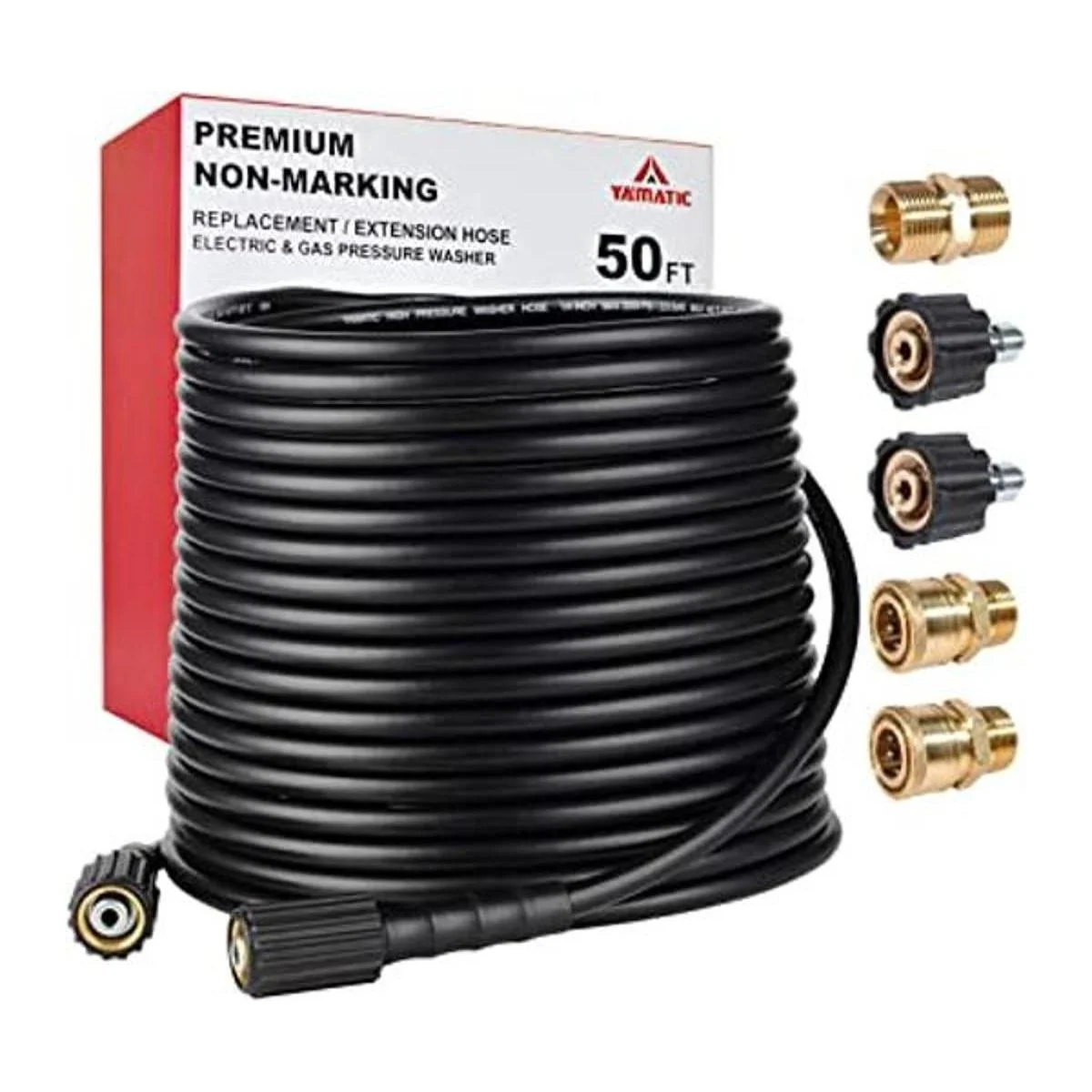YAMATIC Manguera de lavado a presión de 3200 libras por pulgada cuadrada PSI, no se tuerce, 50 pies x 14 resistente acopladores de conexión rápida de 22 mm de diámetro externo M22 a 38 para reemplazoextensión versión mejorada Premium 2X
