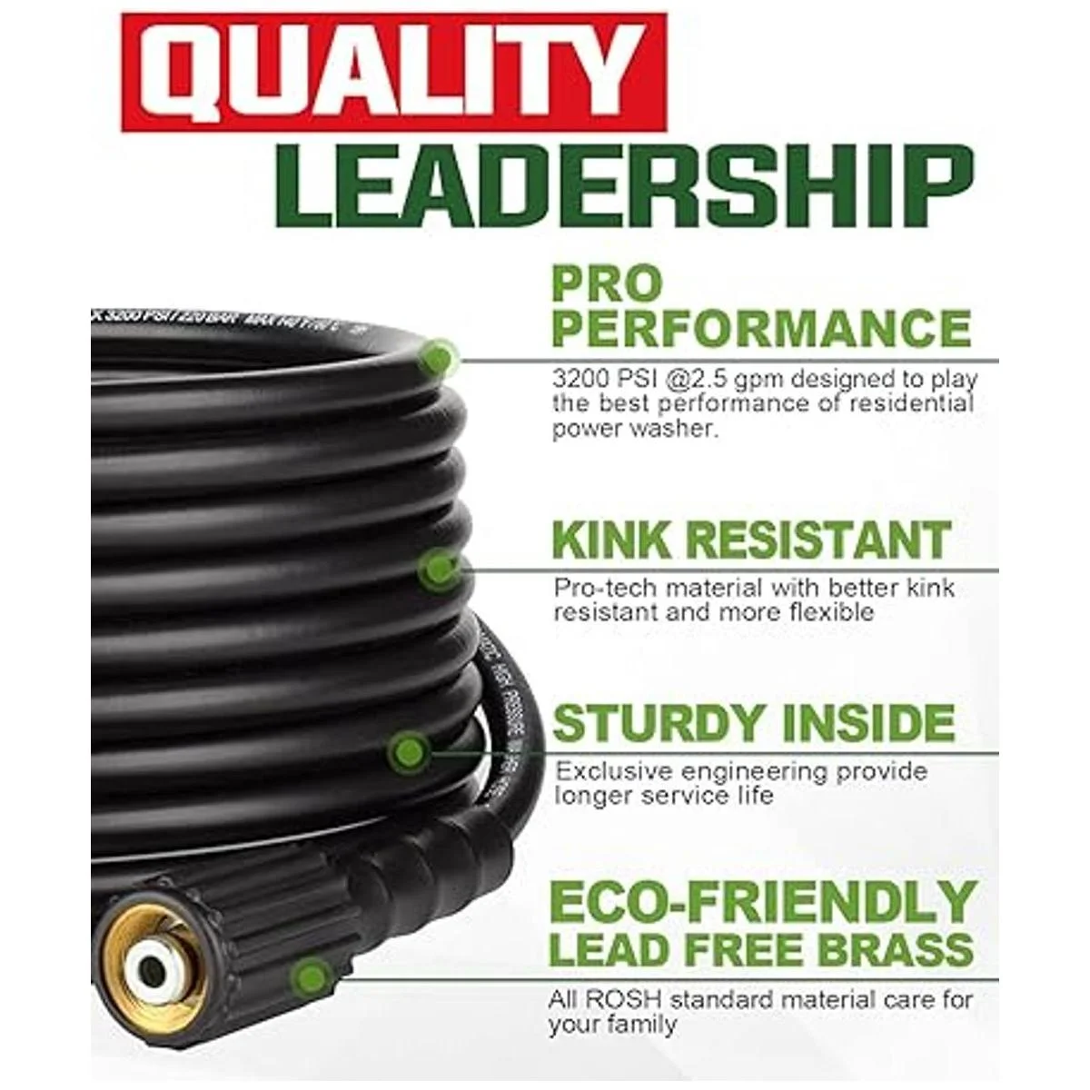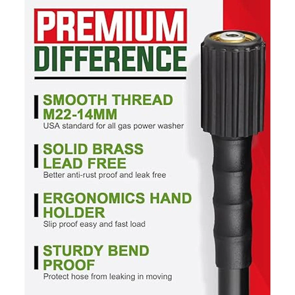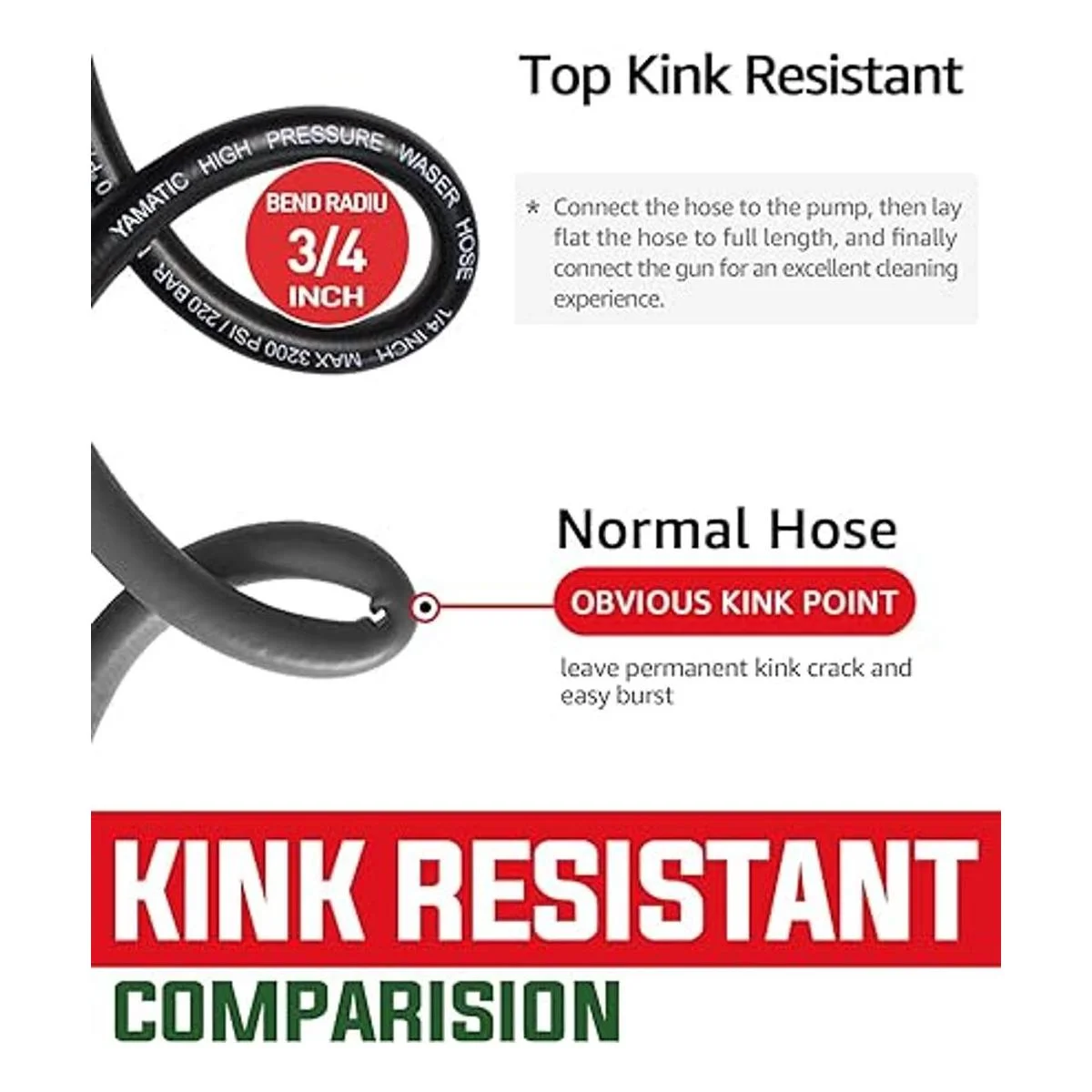 Rendimiento superior: diámetro interior de 1/4 parámetro industrial con rendimiento máximo de 3200 PSI/ráfaga de 8700 PSI, reemplazo diseñado para lavadora de gasolina de alto rendimiento de hasta 3200 PSI equipado con motor de gasolina de 4 hp a 8 hp como Craftsman, Powerstroke, Simpson, Generac, Champion, Honda, BS, Dewalt, Ryobi, etc. También es perfecta y duradera para lavadoras eléctricas de baja presión. Consejos de uso: Extiéndela a la longitud completa antes de usarla, esto facilita que después la muevas y guardes fácilmente.