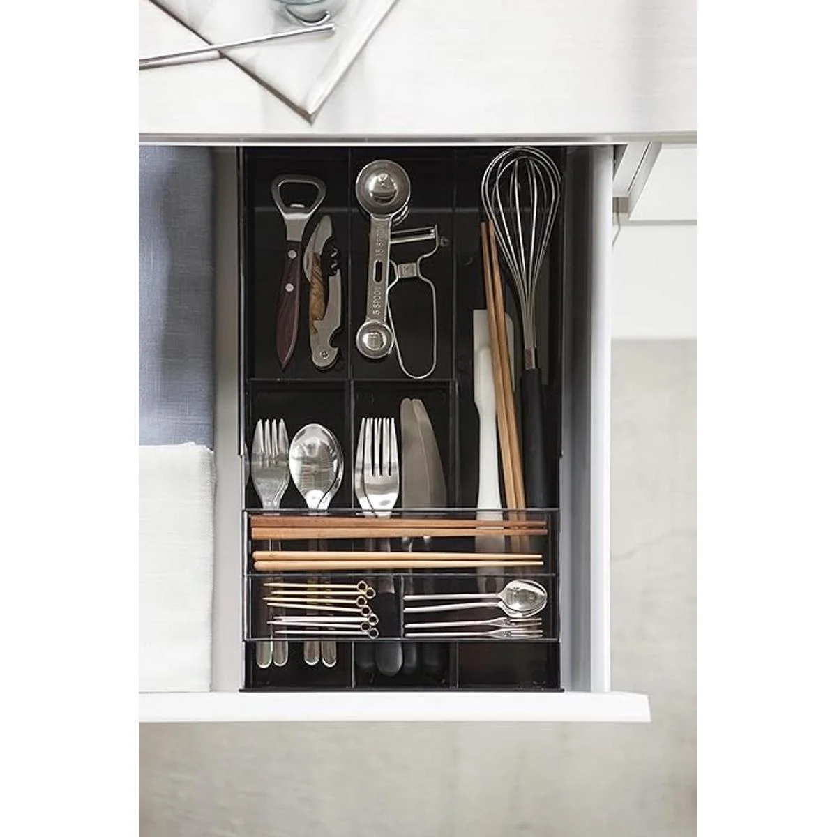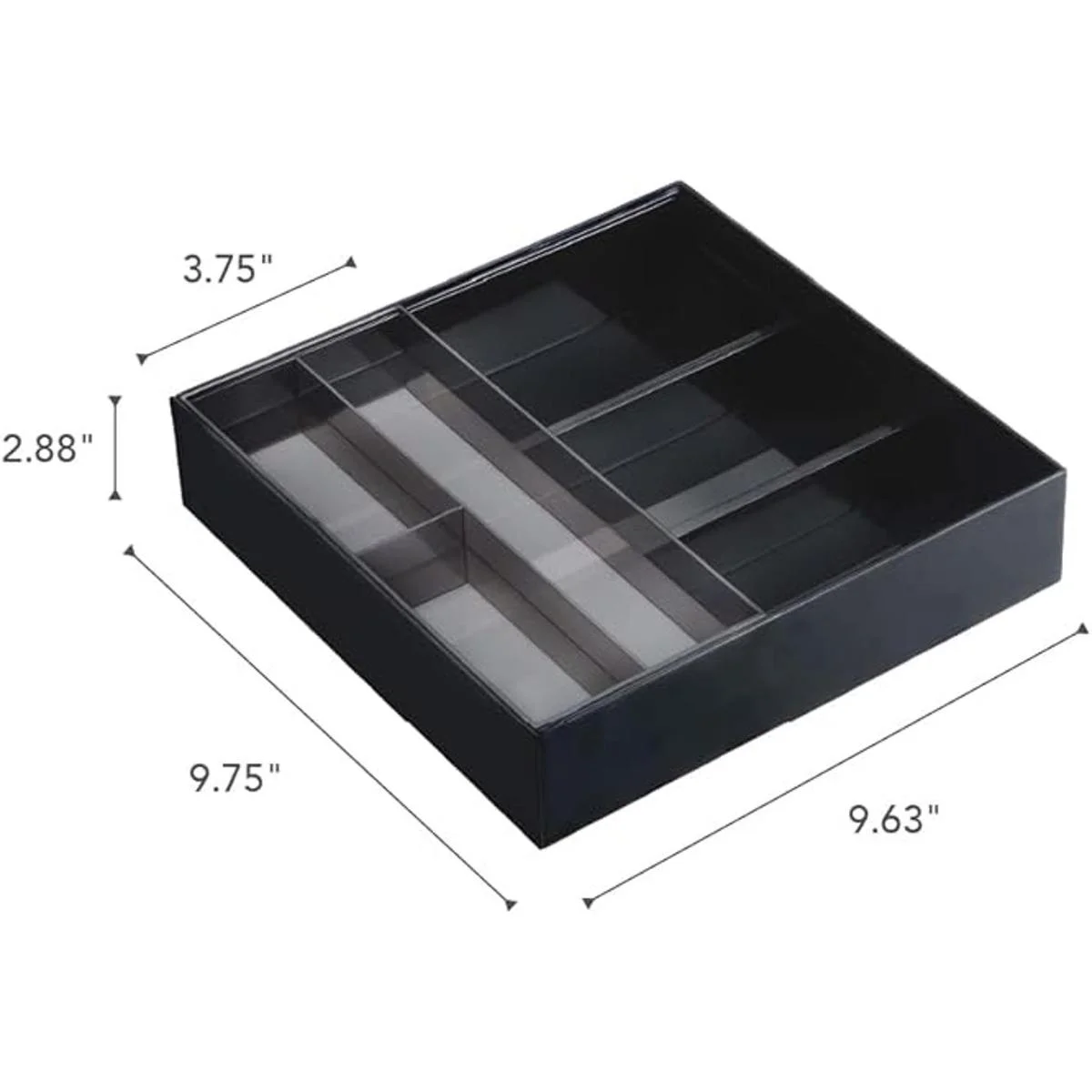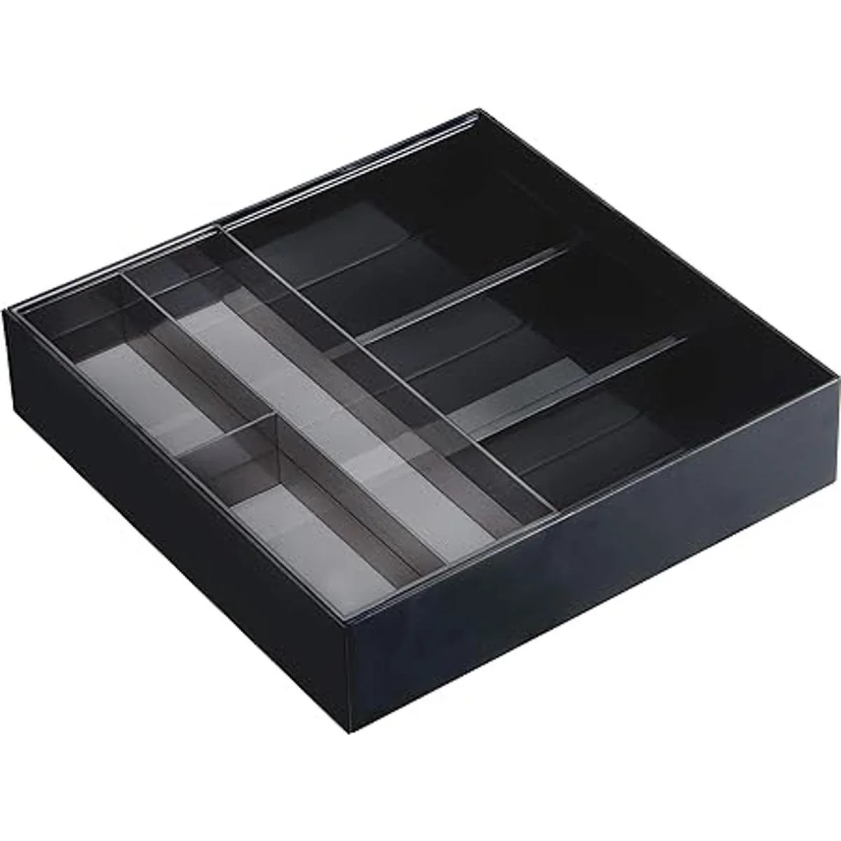 Compartimentos: cuenta con 8 compartimentos en total, 5 en la bandeja principal y 3 en la bandeja anidada transparente que se coloca en la parte superior. Estos cubiertos hacen que sea fácil apilar cubiertos en varios compartimentos expandibles.