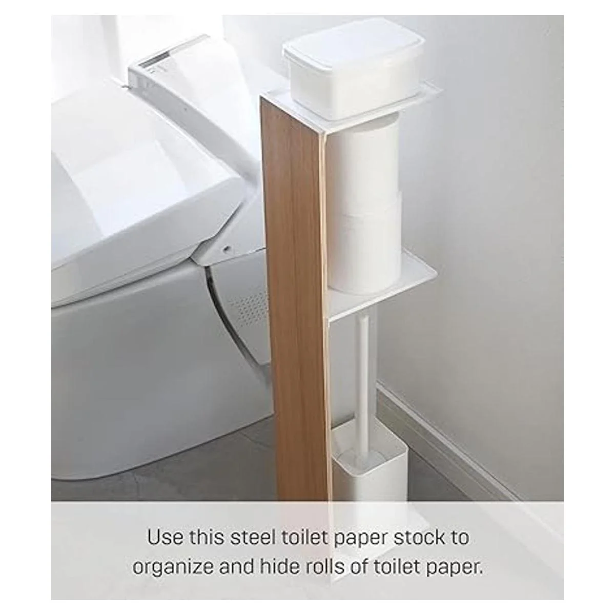 Yamazaki Home Organizador de suministros Estantes de almacenamiento de baño delgados Acero madera Almacenamiento de papel higiénico, talla única, ceniza