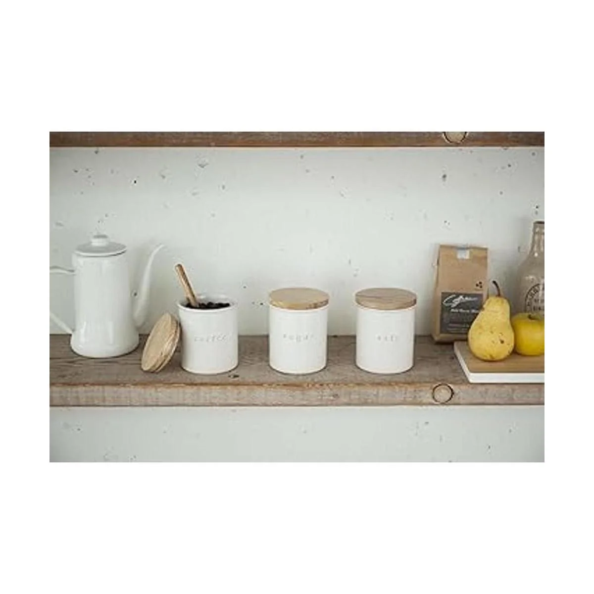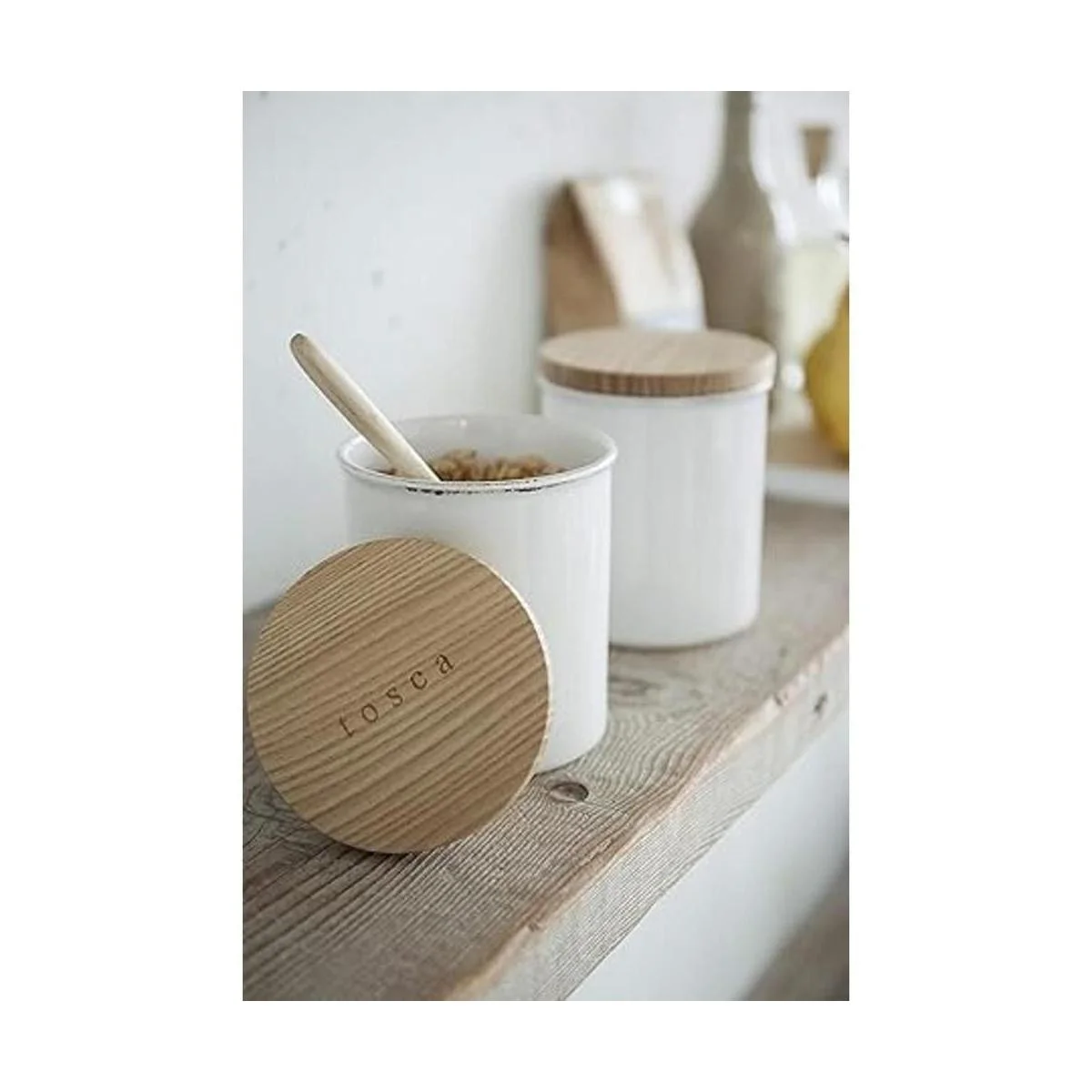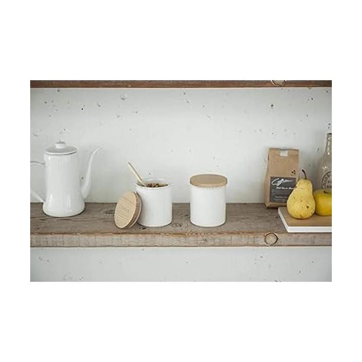 Bote de cerámica: un simple recipiente de almacenamiento de cerámica para la despensa o encimera. La amplia apertura y la tapa de madera proporcionan un fácil acceso a los productos secos en el interior. Es el organizador de cocina perfecto para tu despensa o armario.