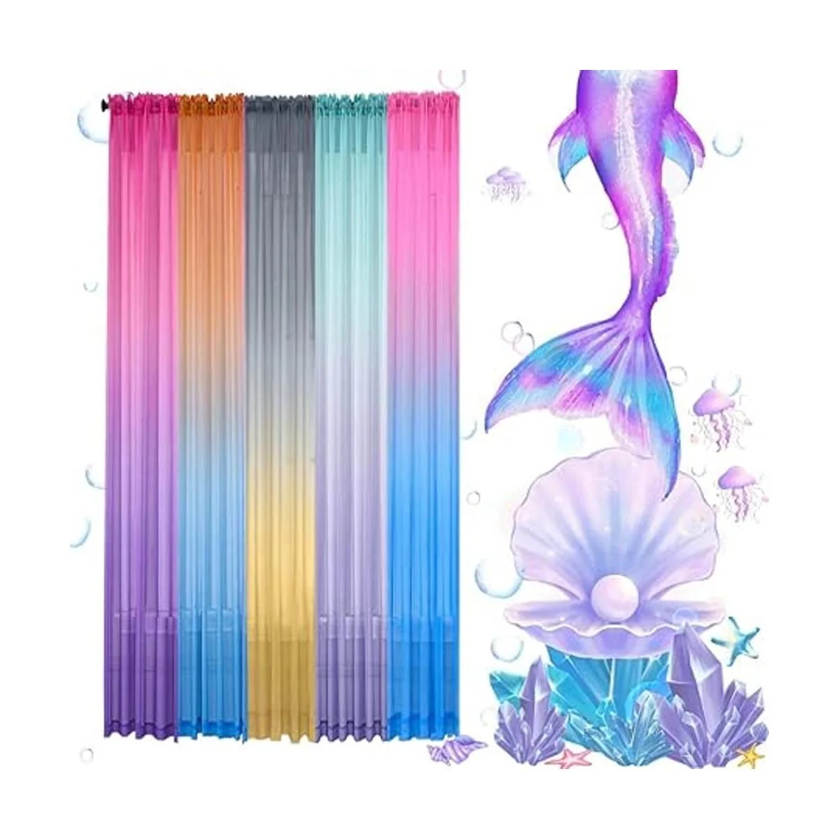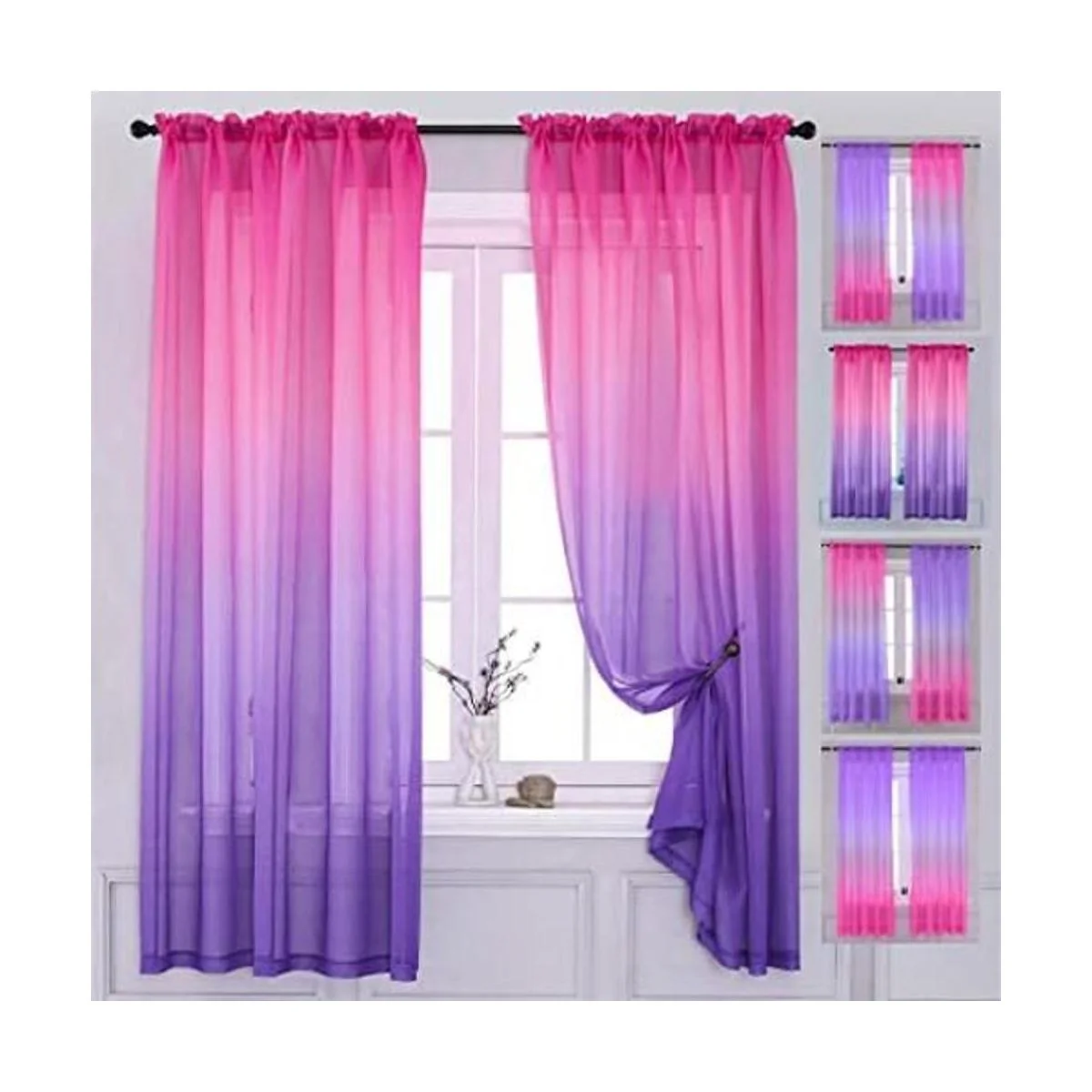 Yancorp Cortinas de dormitorio de 63 pulgadas de largo, cortinas traslúcidas de color rosa y morado, cortinas con bolsillo para barra de cortina para niñas, sala de estar, decoración de dormitorio de sirena, 1 panel morado rosa, 40 x 63 pulgadas